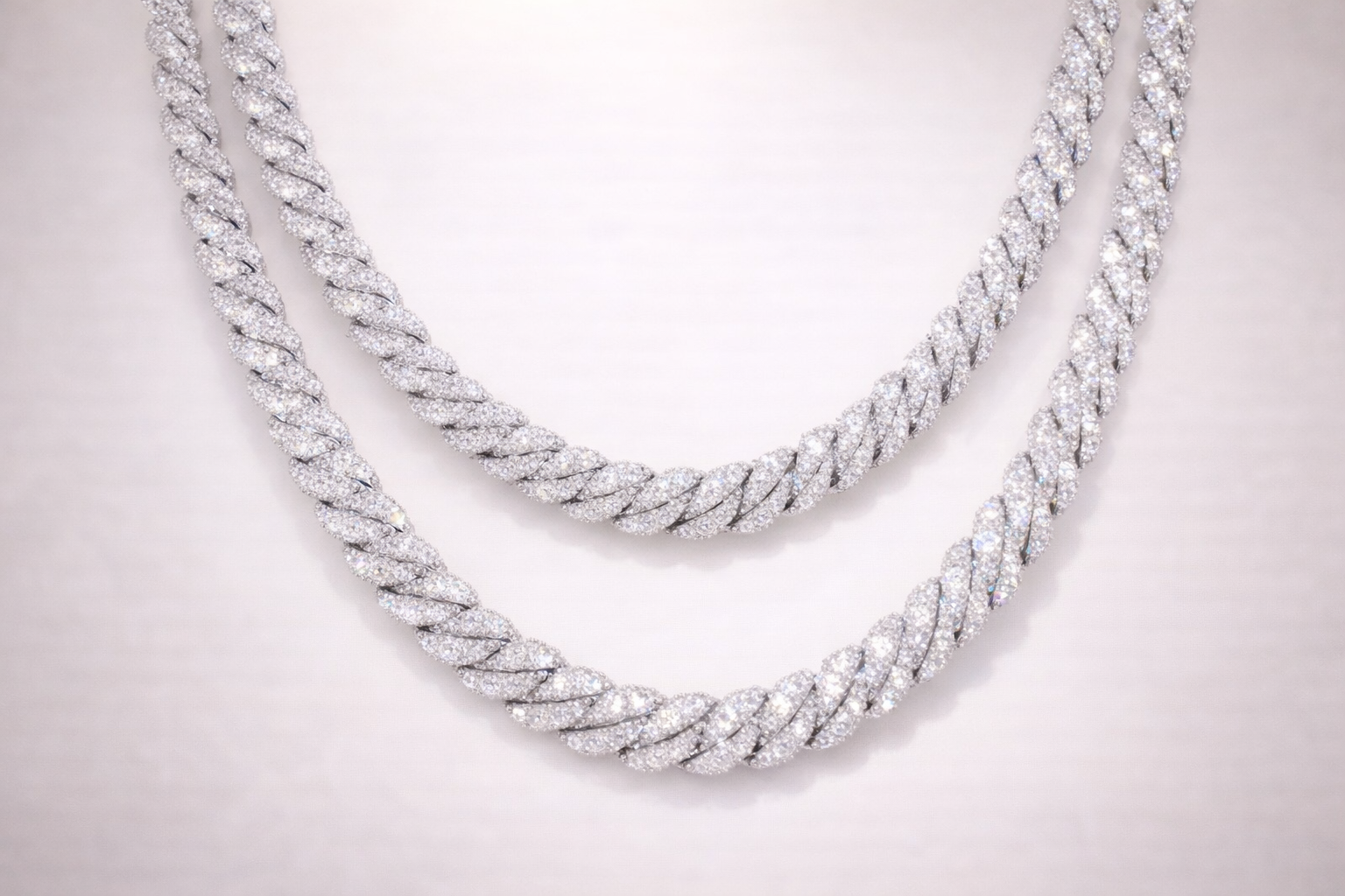 10mm Diamond Cuban Link Chain White Gold/18K Gold Plated Bling 5A+ CZ Necklace Rapper Hip Hop Luxury Jewelry for Men and Women