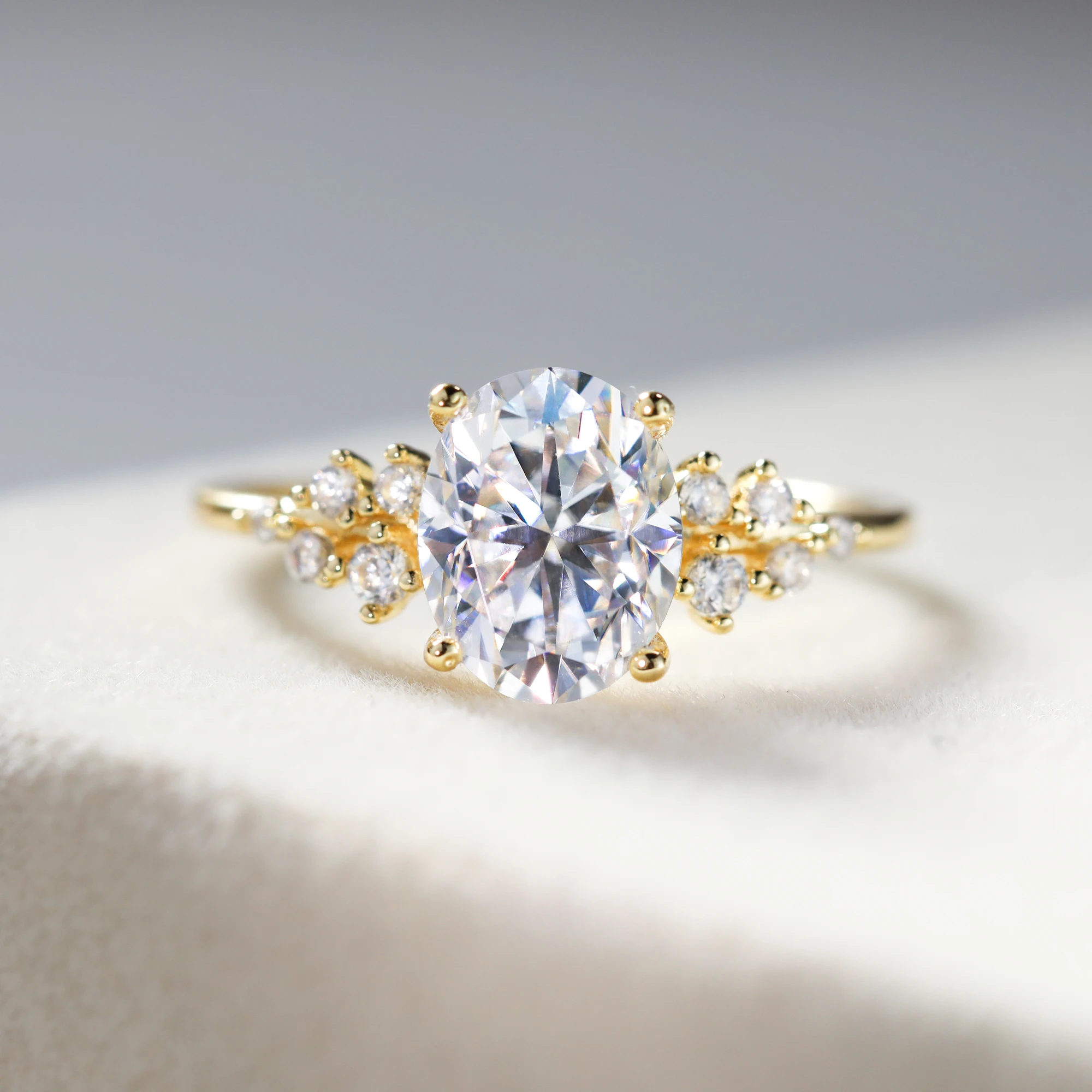 1ct 2ct 3ct Oval Brilliant Cut Moissanite 14K Gold Color 925 Sterling Silver 4 Prongs Side Engagement Rings Wedding Gift for Wom