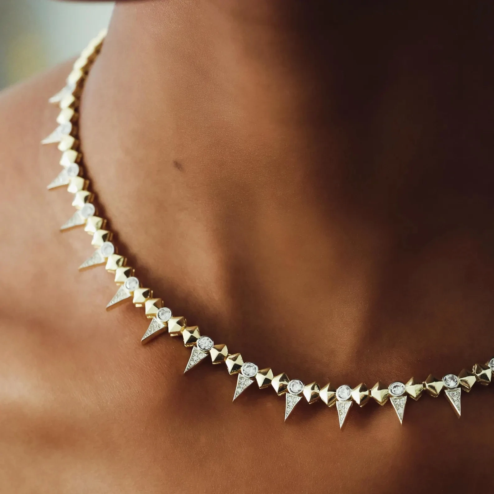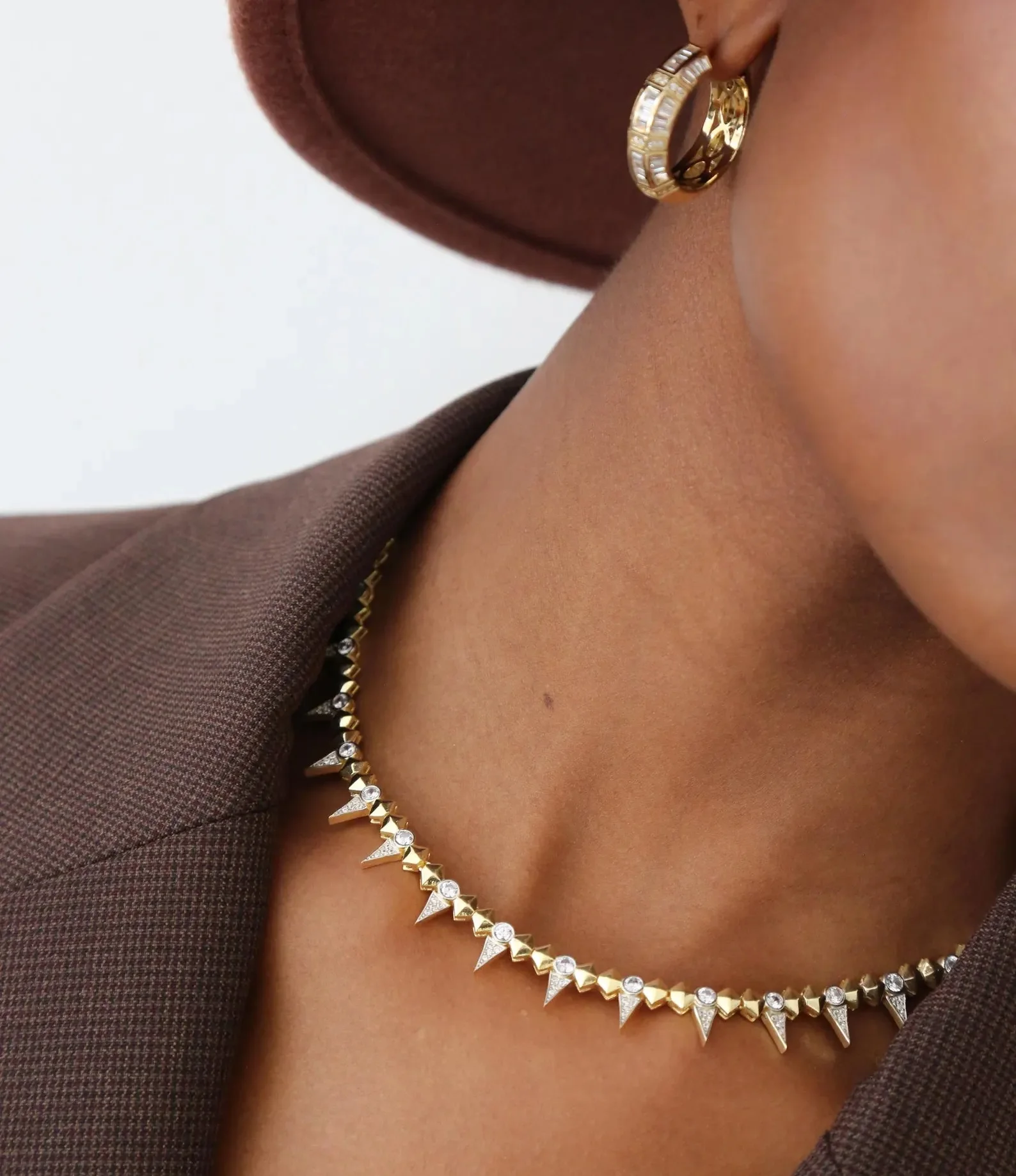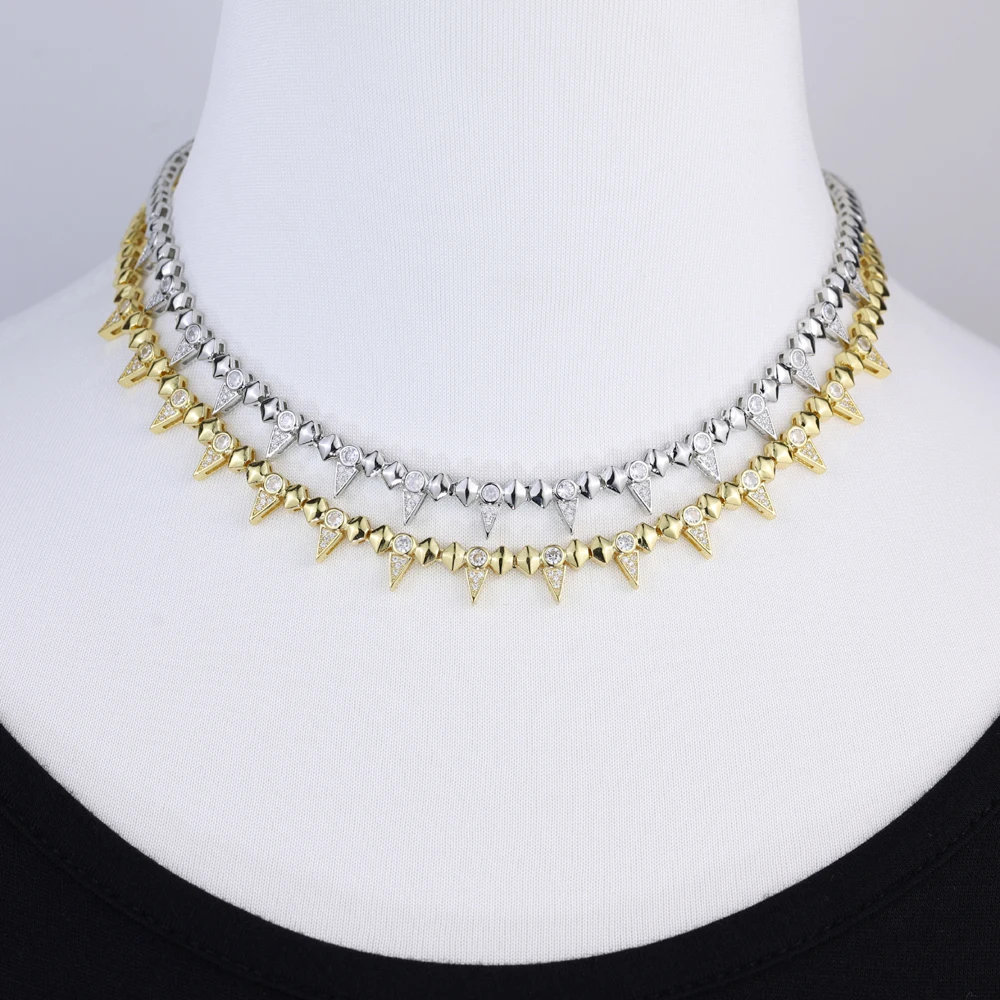 2025 New Cool Women Jewelry Gold Color Rock Punk CZ Paved Spike Geometric Charm Chain Necklace