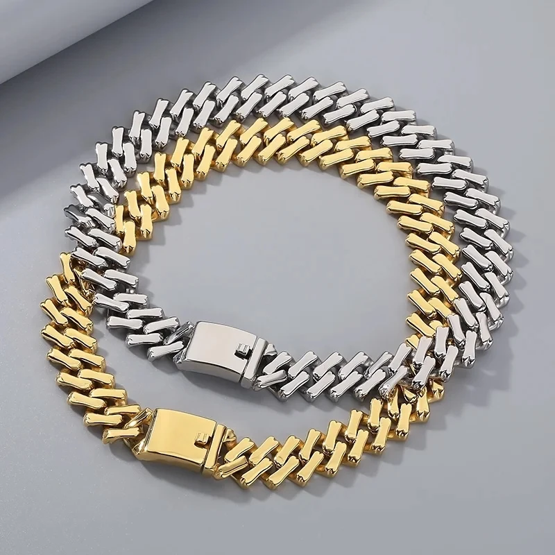 20mm Heavy Punk Retro Cuban Curb Chain Necklace Bracelet Men Women Hiphop Gold Color Stainless Steel Bike Necklaces Jewelry