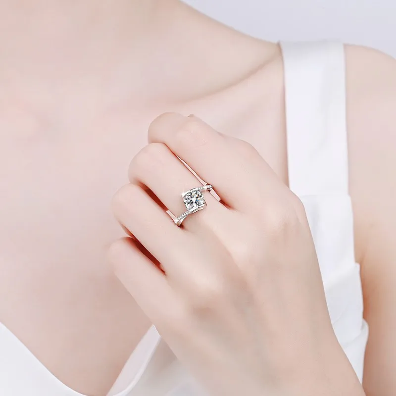 2Ct Moissanite Women’s Angel’s Kiss Ring PT950 Platinum Premium Texture Pure Personality Essential for High-End Galas