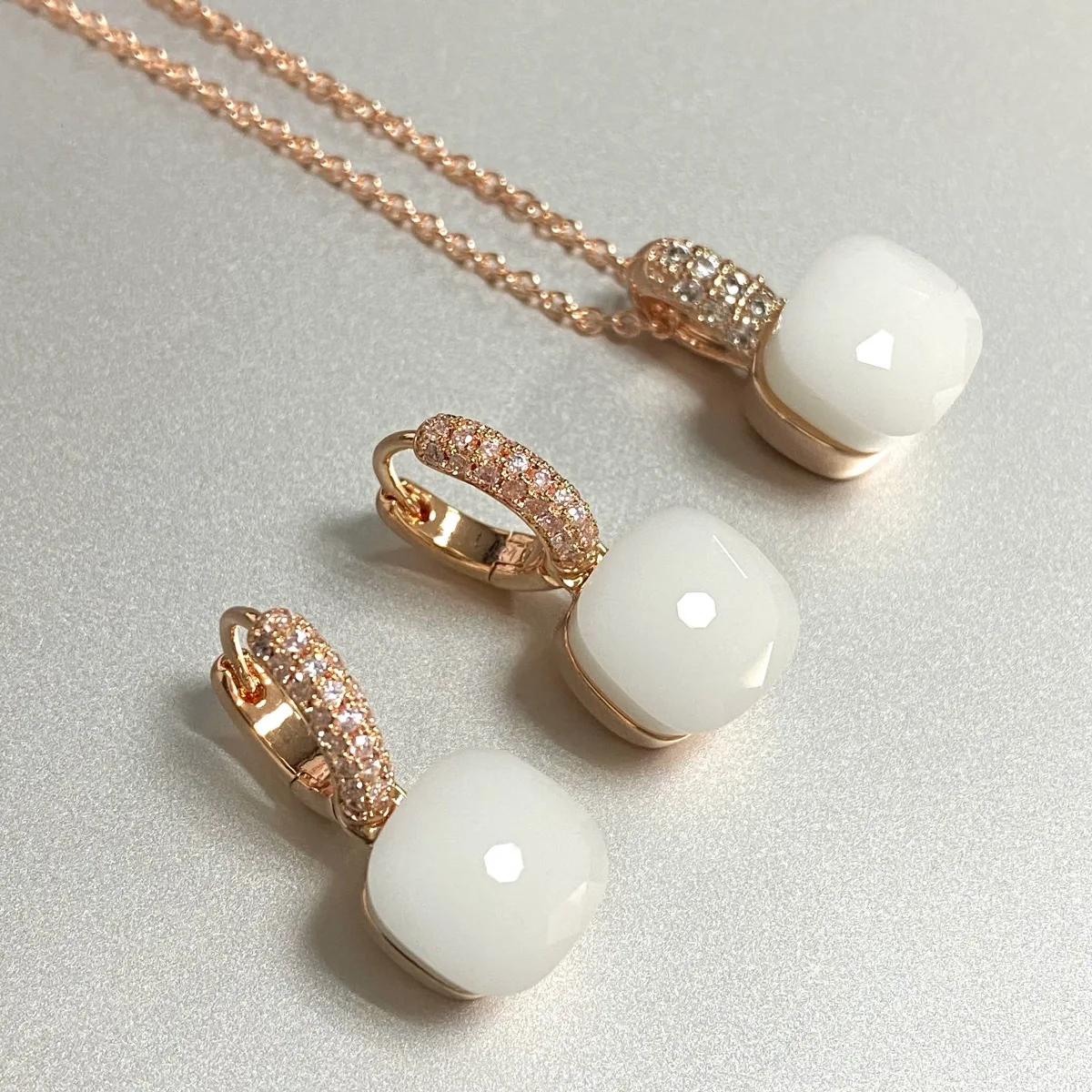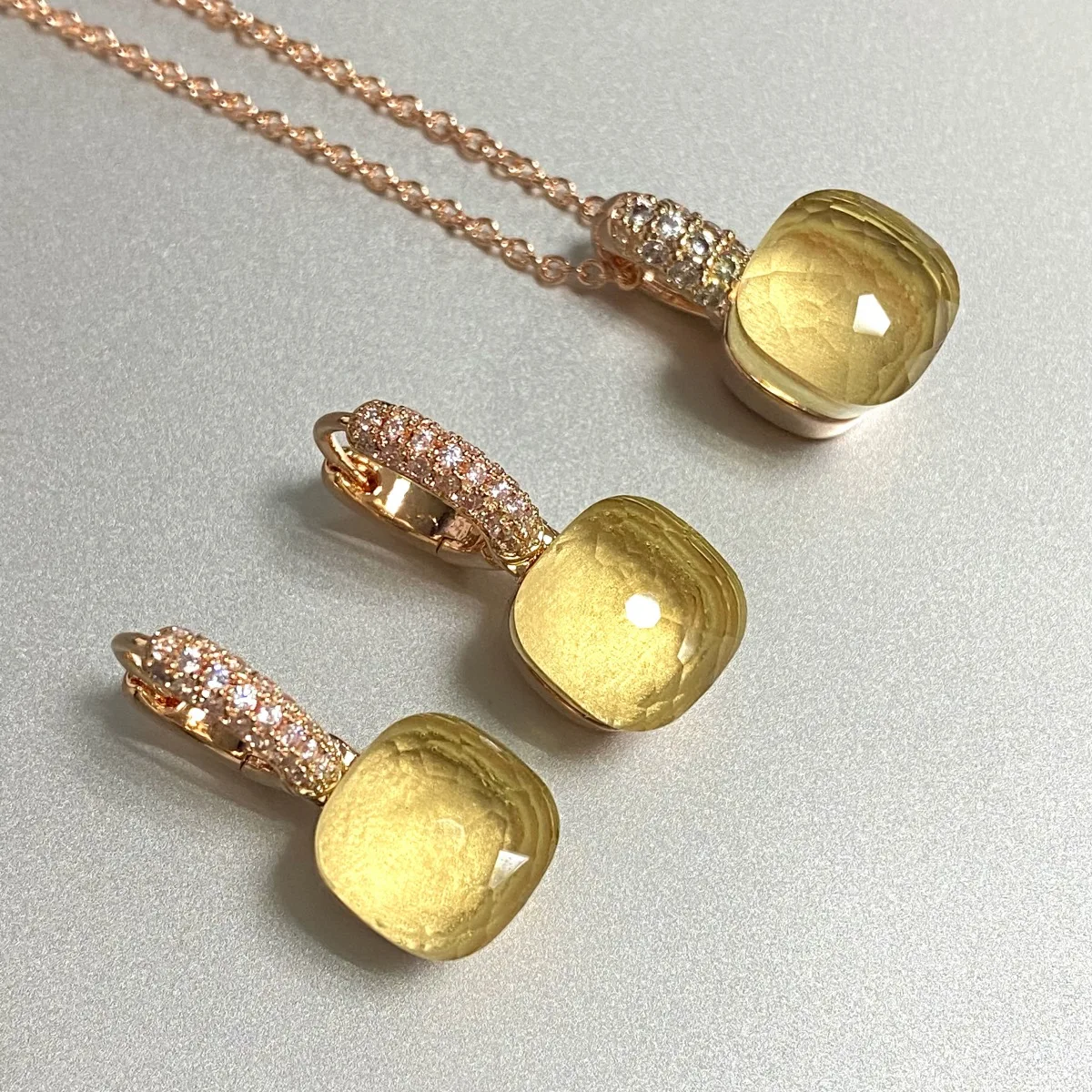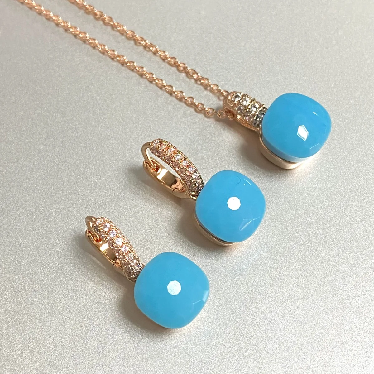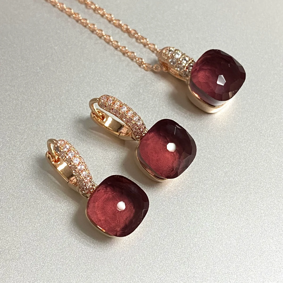 2Pcs/Set Women Earrings Necklace Jewelry Set Inlay Zircon 30Colors Pink Crystal Jewelry Set Rose Gold Plated Fashion Jewelry
