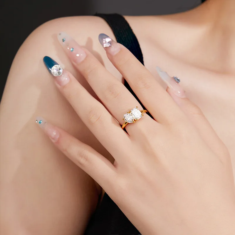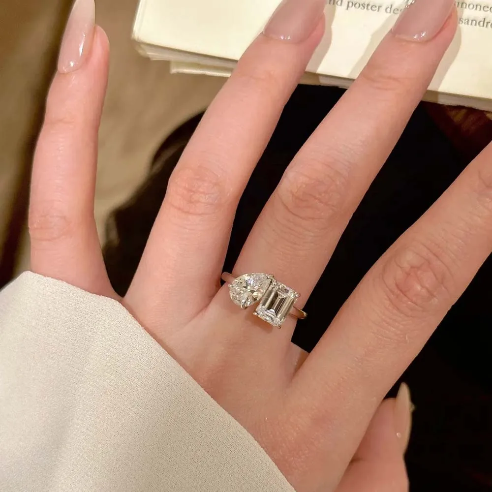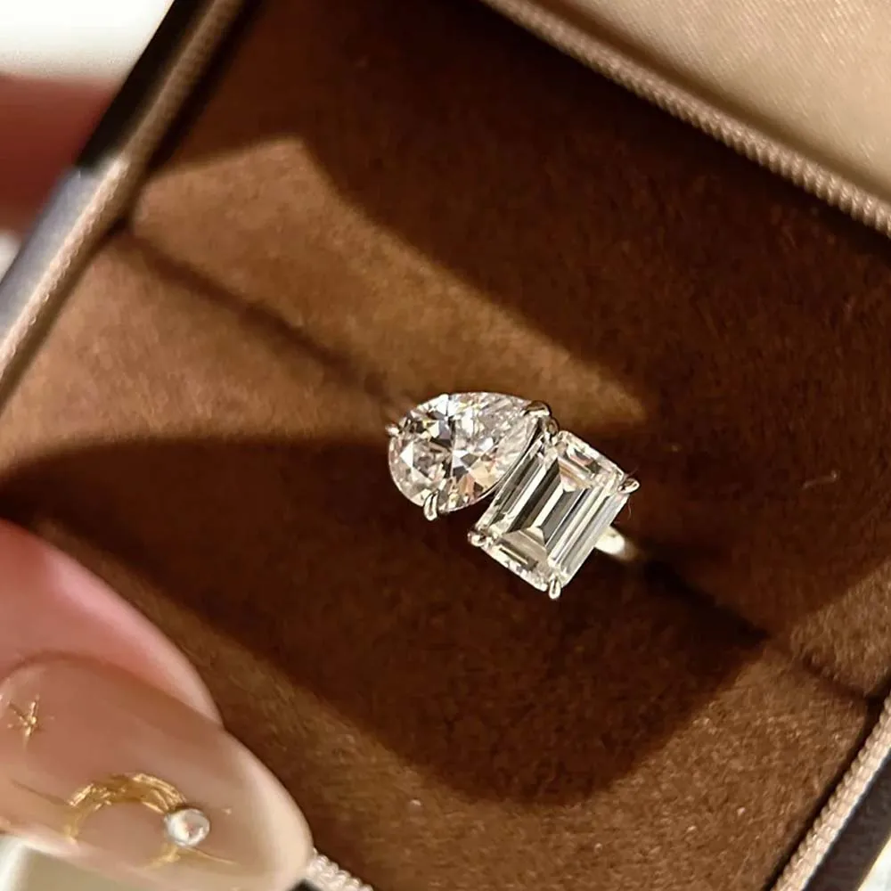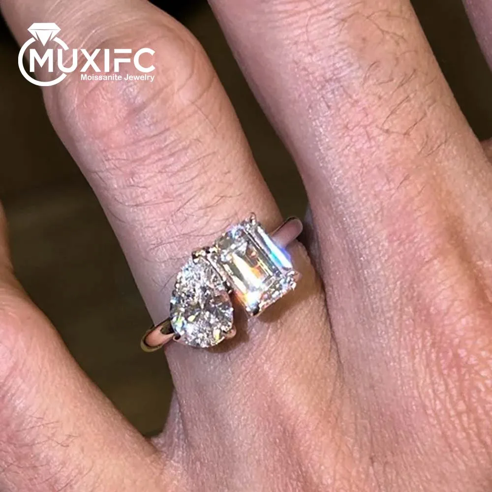 3 Carat Moissanite Wedding Ring with Certificate Sparkling 2 Stone Pear/Emerald Cut Lab Diamond Engagement Band S925 Silver Gift