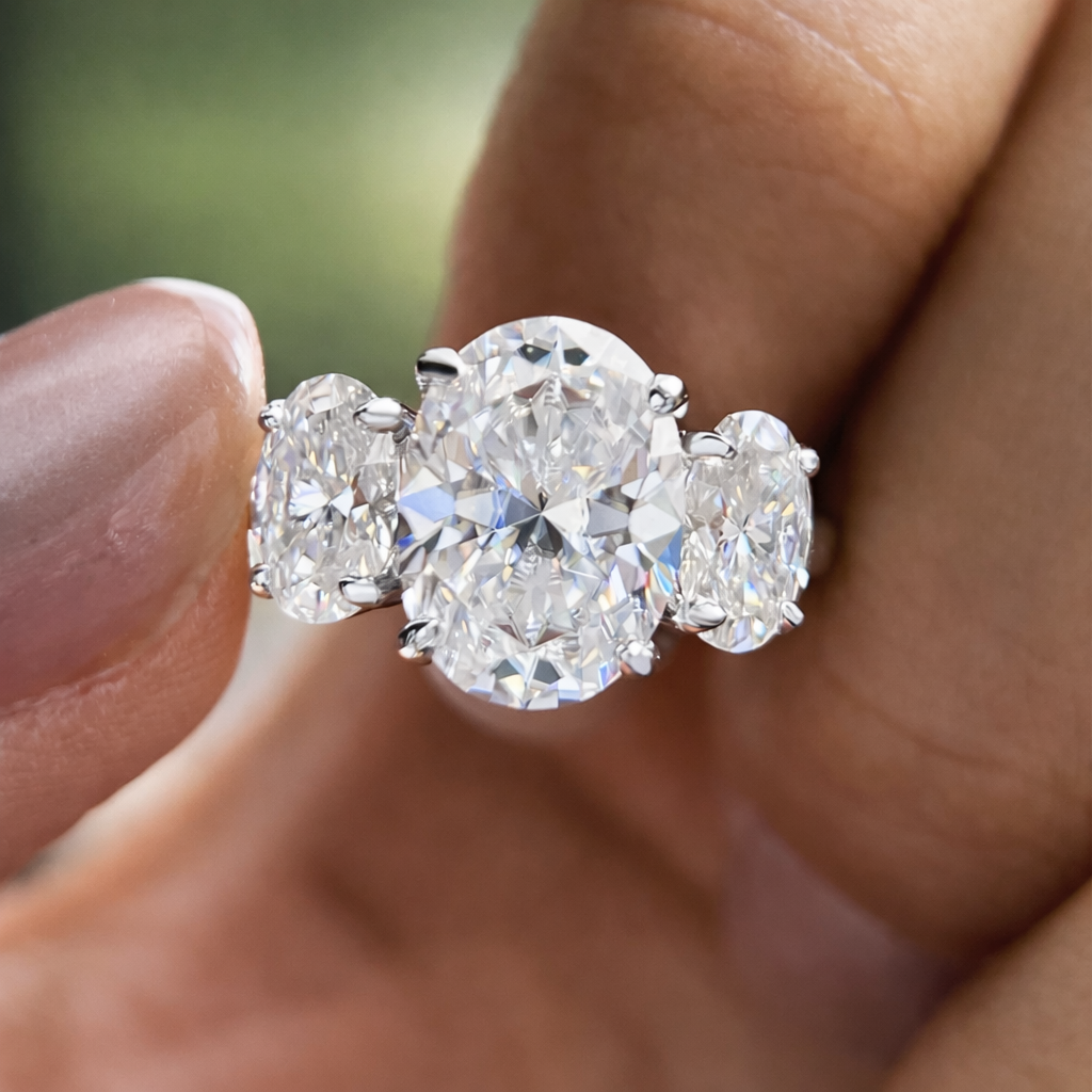 Be the first to review “6cttw Oval Cut All Moissanite Engagement Ring with GRA 925 Sterling Silver Three Stone Diamond Wedding Bands for Women Jewelry”