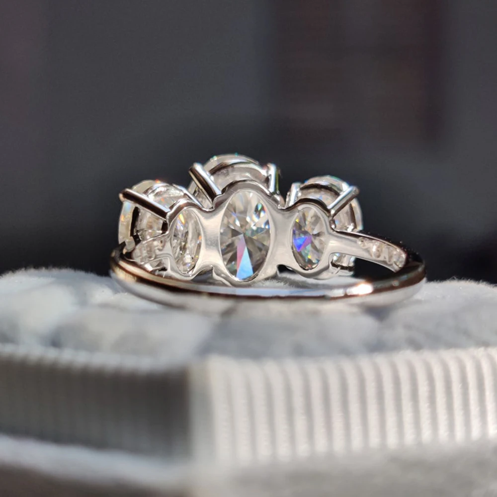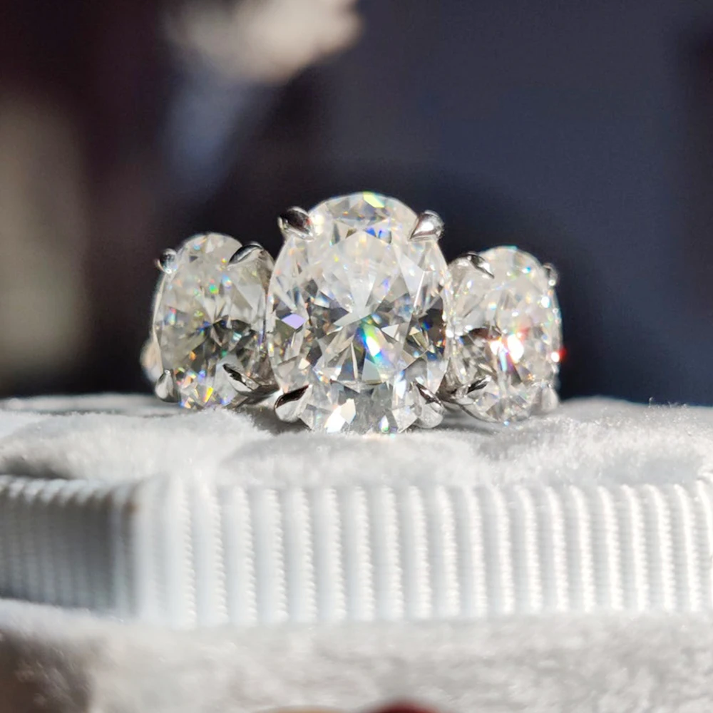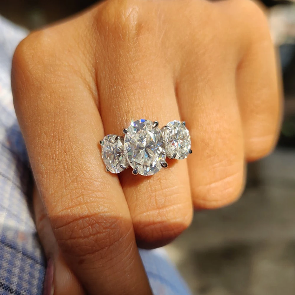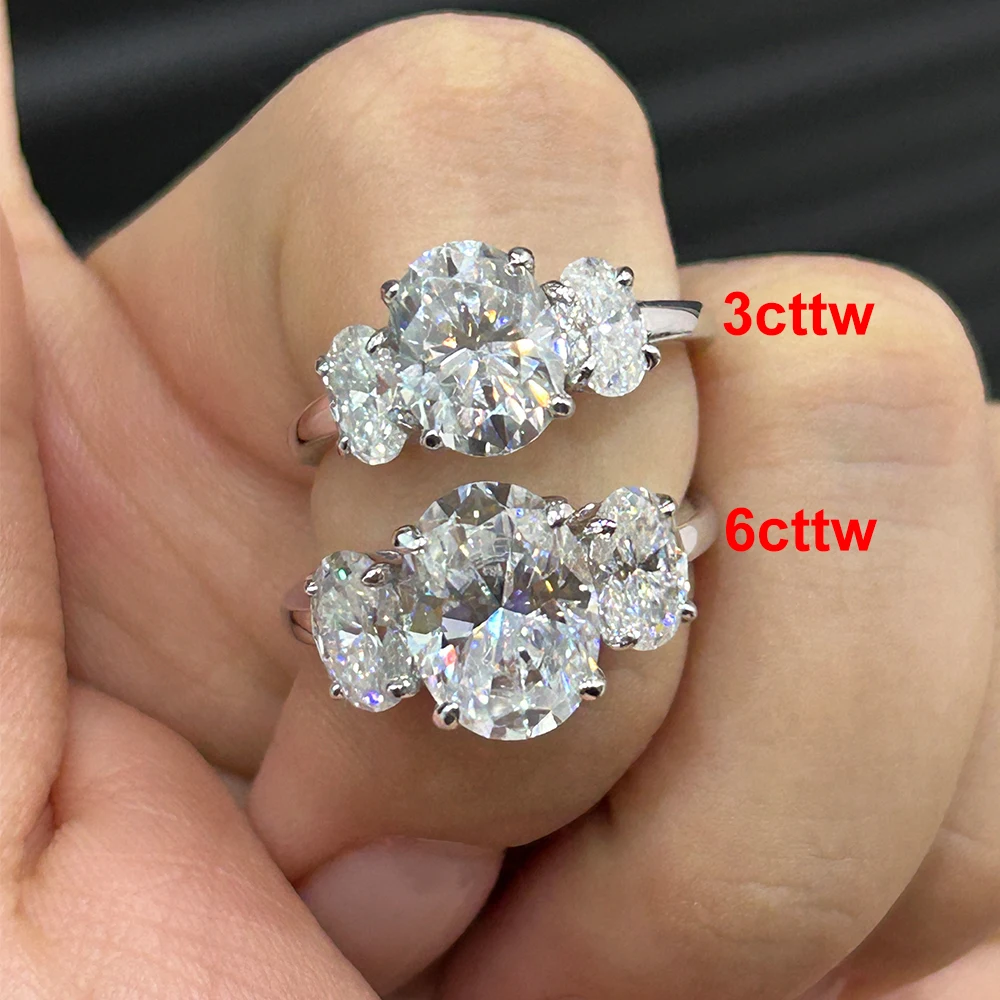 6cttw Oval Cut All Moissanite Engagement Ring with GRA 925 Sterling Silver Three Stone Diamond Wedding Bands for Women Jewelry