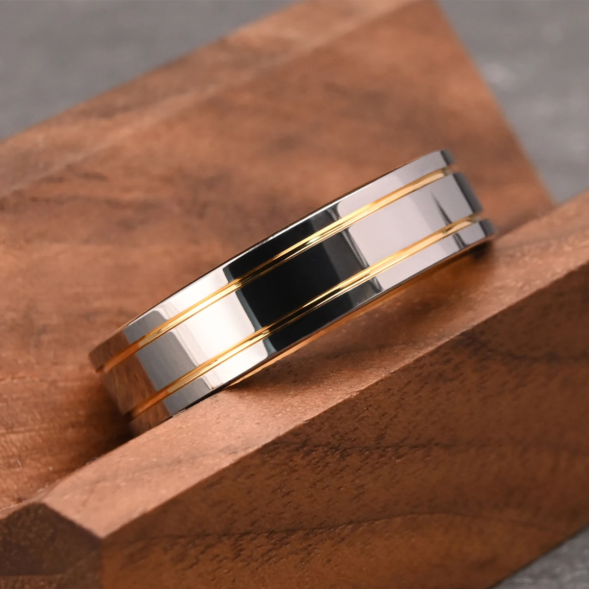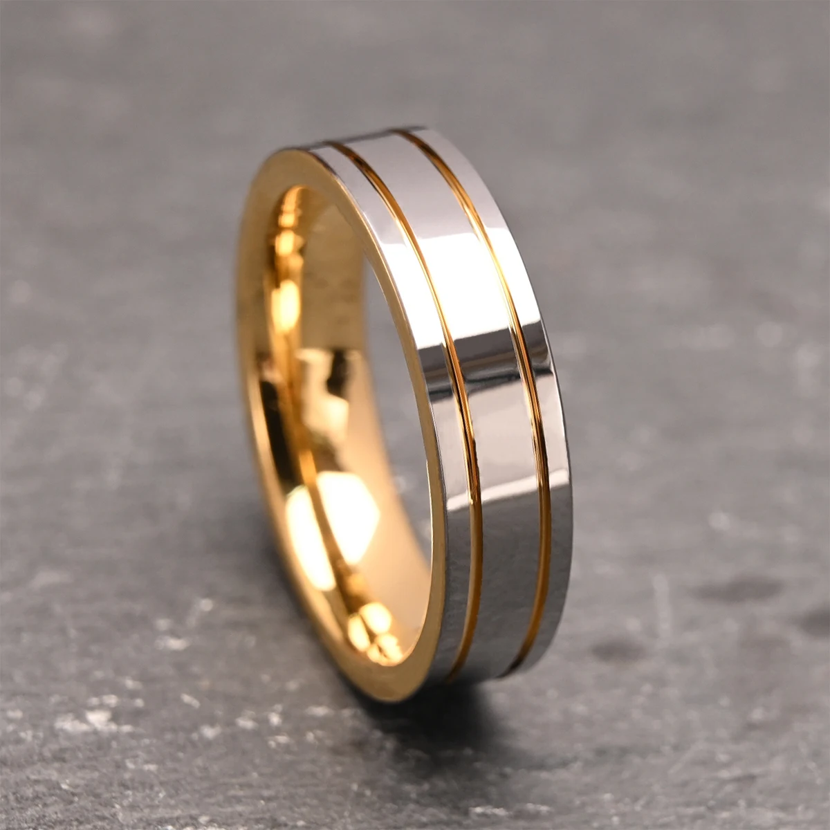 6mm Gold & Silver Tungsten Carbide Ring – Classic Men’s Wedding Bands