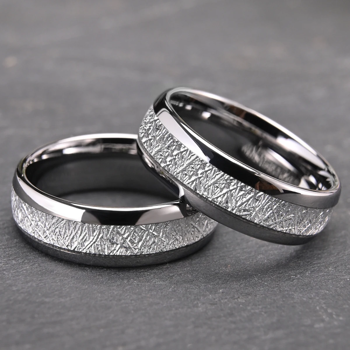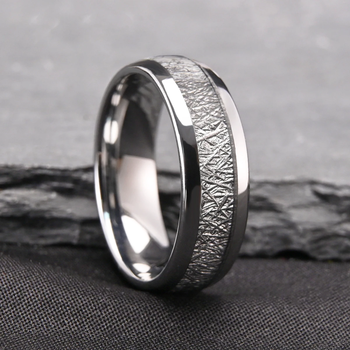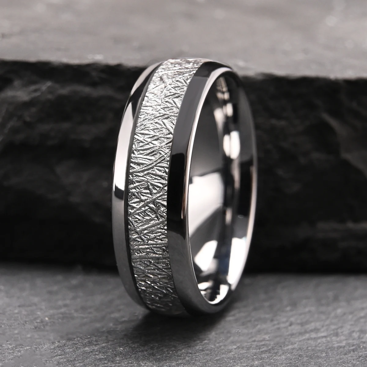 8mm classic simple inlaid silvery mist pattern tungsten steel ring, comfort fit male and female couple jewelry accessories。