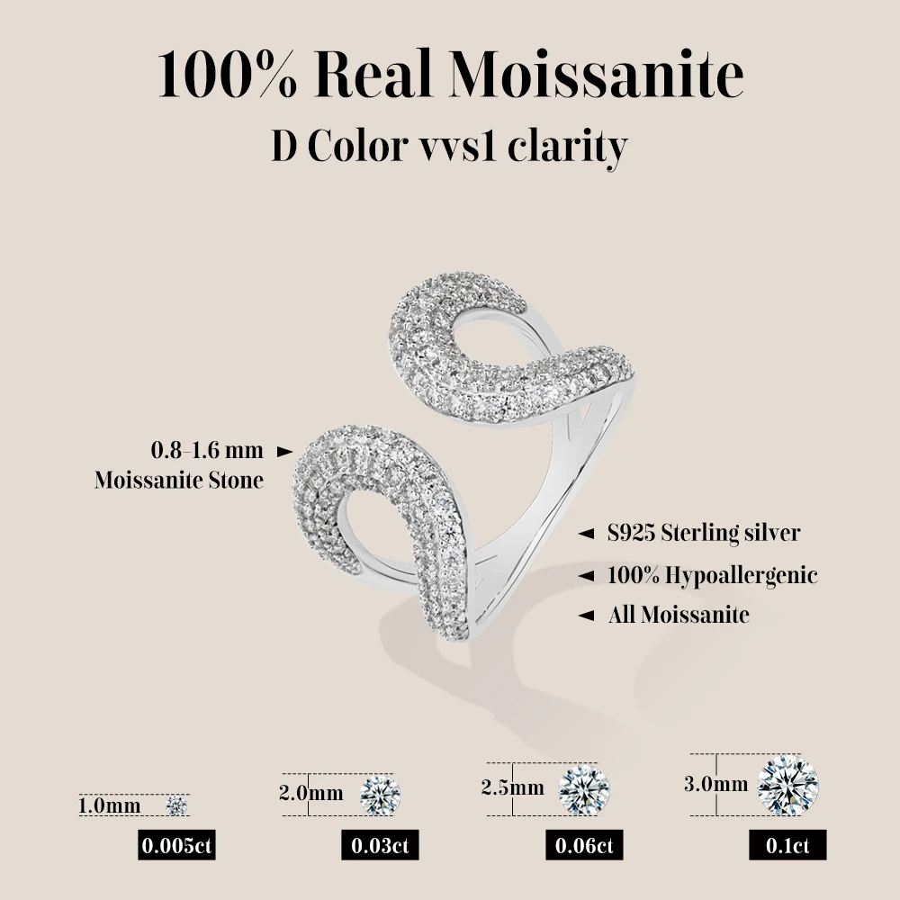 ATTAGEMS Full Moissanite Ring Hollow Design DVVS1 925 Sterling Silver Adjustable Delicate Classical Jewelry For Women Girl Party