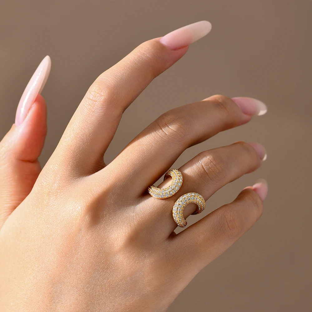 Uworld Minimalist Classic 18K Gold Color Plated Star Moon Double Layer Open Rings Design Waterproof Stainless Steel Jewelry Gift