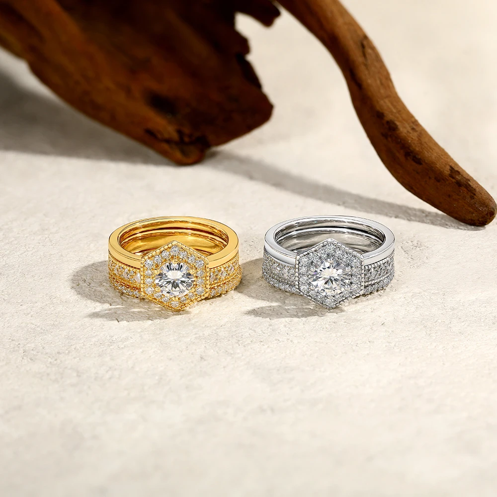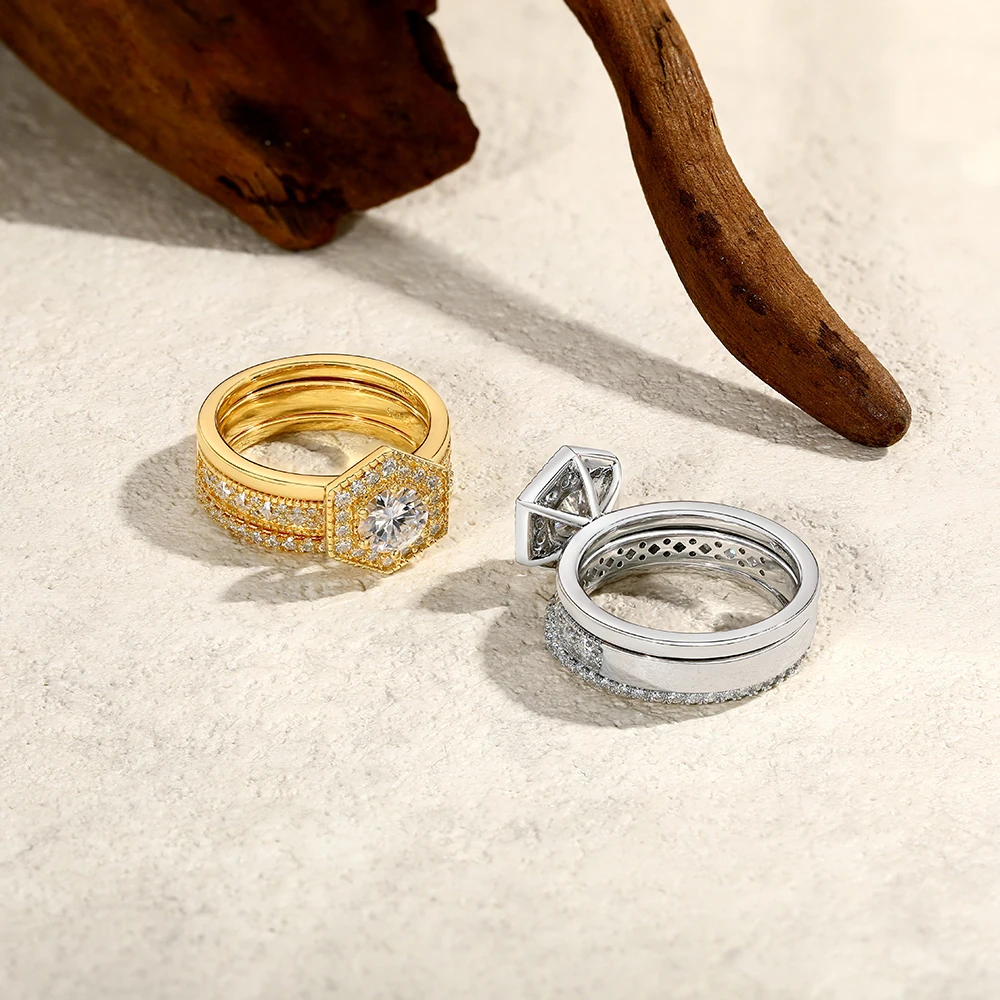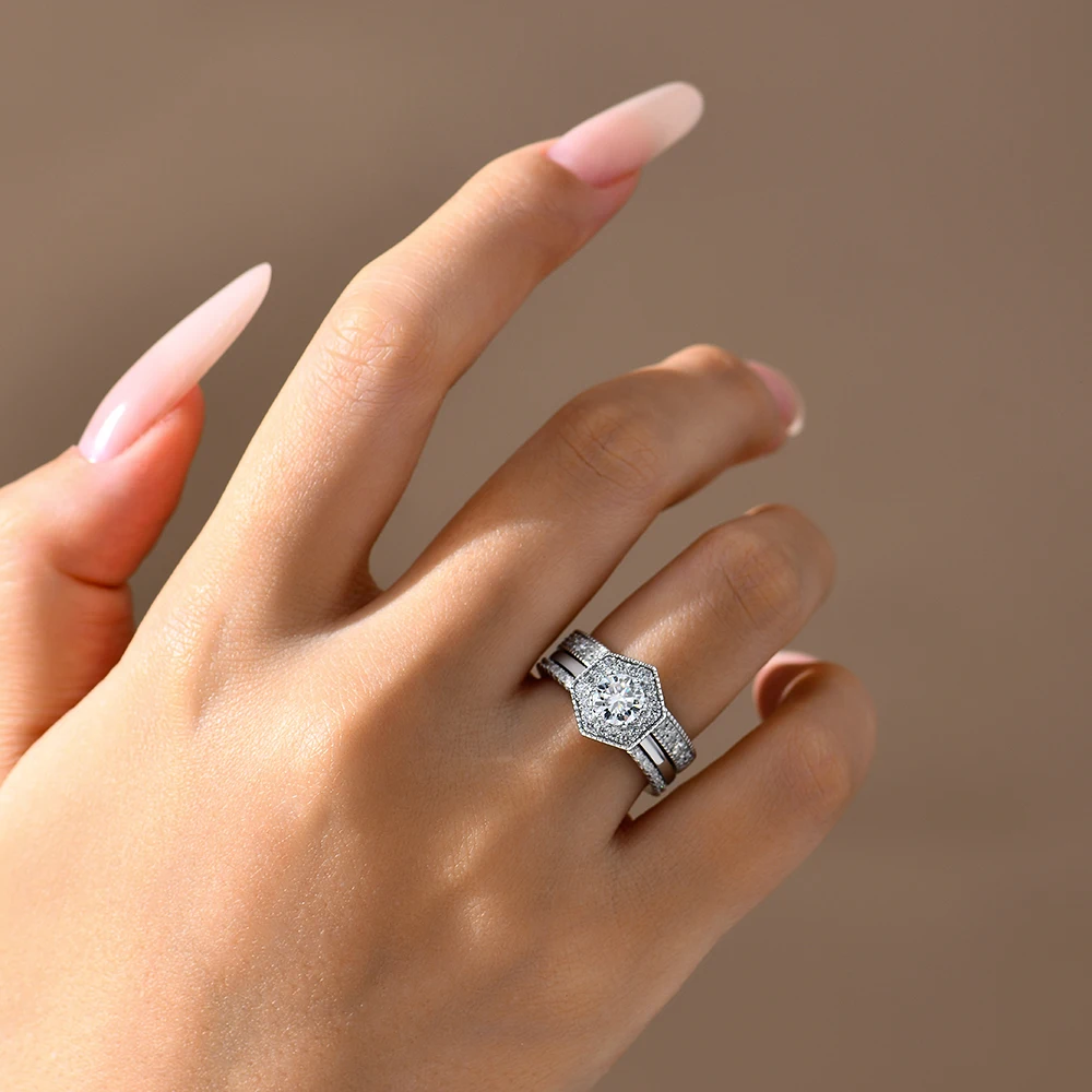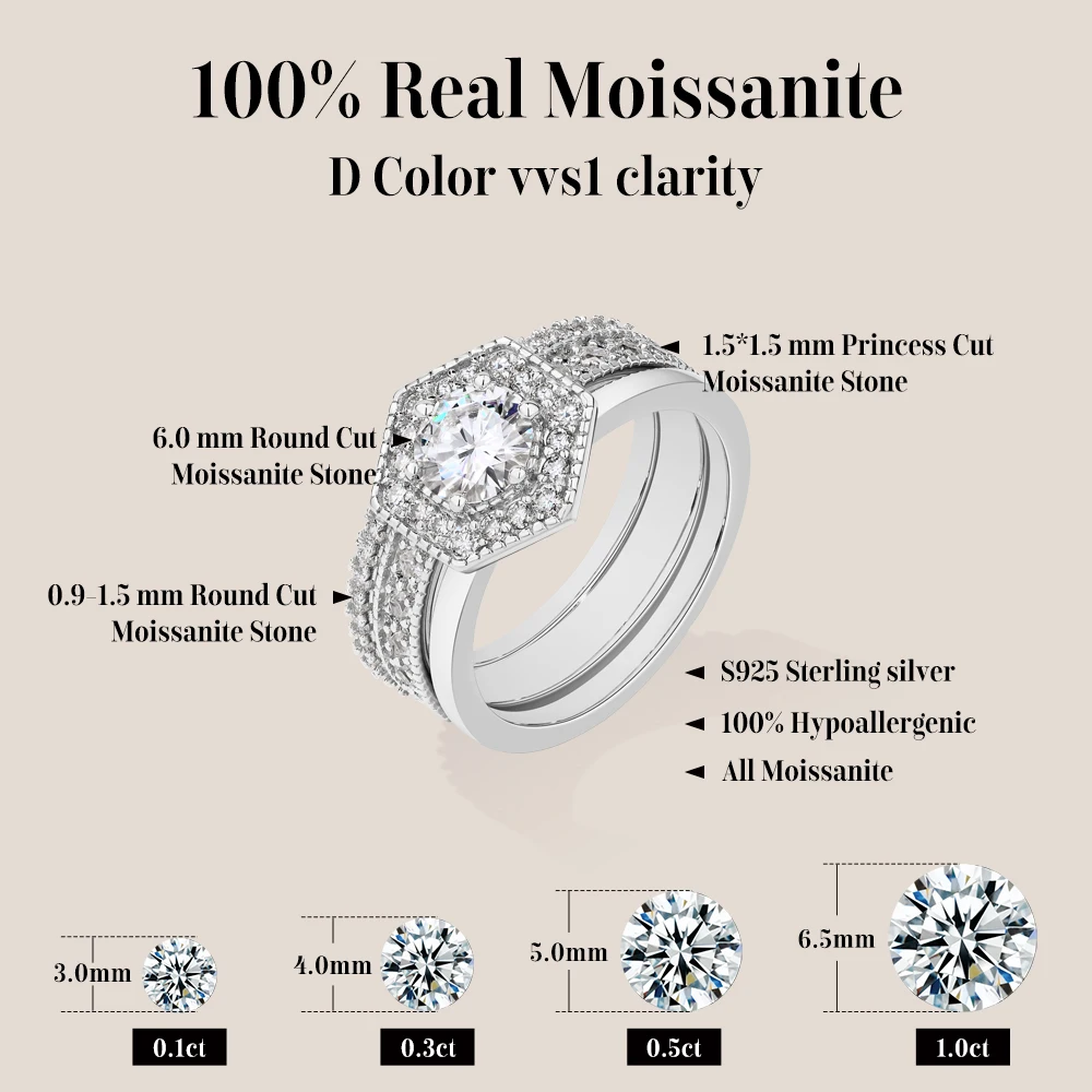 ATTAGEMS Original Round Cut 6mm Moissanite 3pc Rings Set 925Sterling Silver Luxury Engegament Wedding Women‘s Ring Fine Jewelry