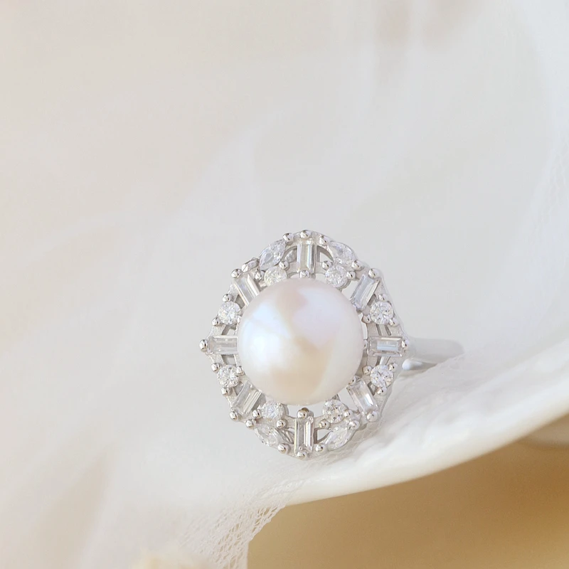 Authentic 925 Sterling Silver Ring Handmade Inlaid Natural Freshwater Pearl Opening Rings Creative Fashion Women Jewelry Gift
