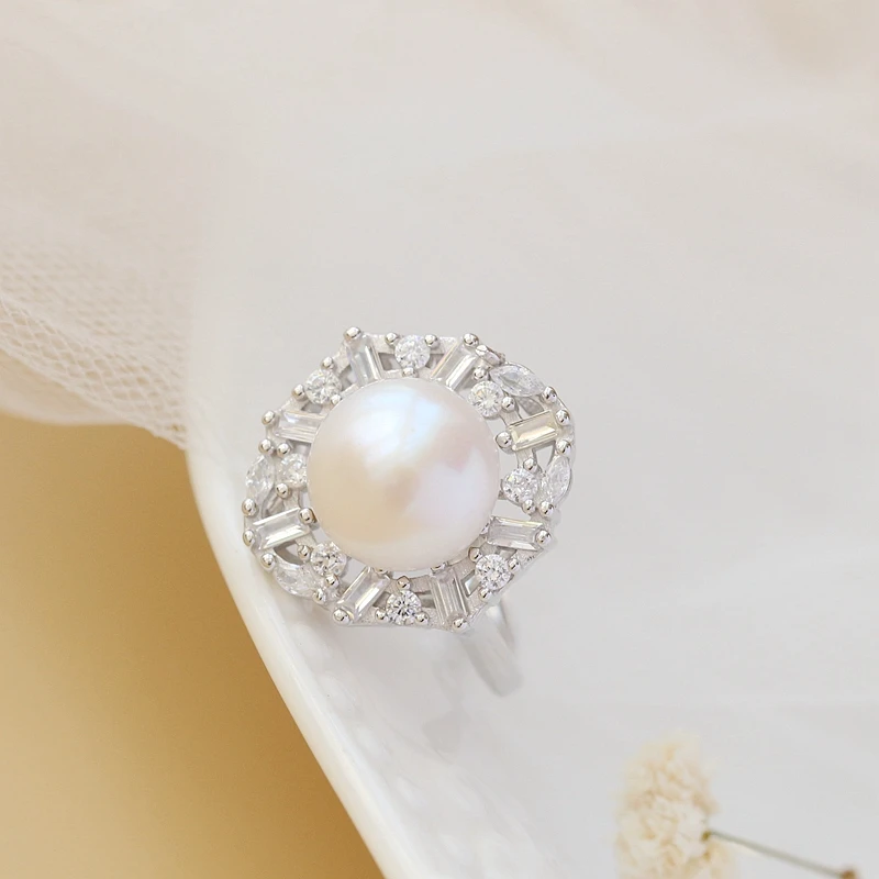 Add to cartAuthentic 925 Sterling Silver Ring Handmade Inlaid Natural Freshwater Pearl Opening Rings Creative Fashion Women Jewelry Gift
