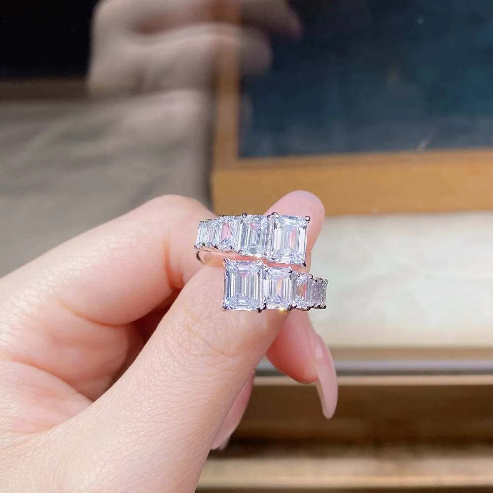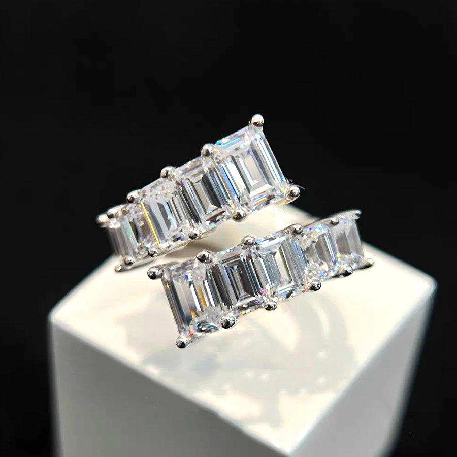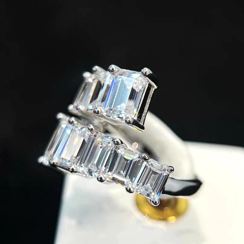 BXINY 2cttw Emerald Cut Moissanite Open Ring 925 Sterling Silver for Women Men Lab Diamond Adjustable Band Fine Jewelry with GRA