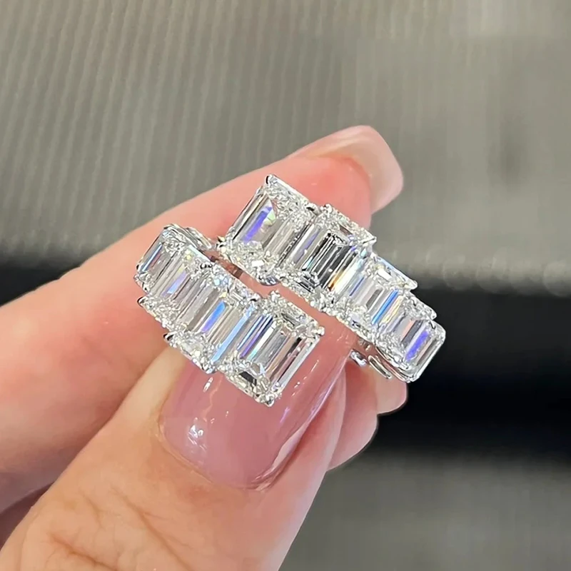 Add to cartBXINY 2cttw Emerald Cut Moissanite Open Ring 925 Sterling Silver for Women Men Lab Diamond Adjustable Band Fine Jewelry with GRA