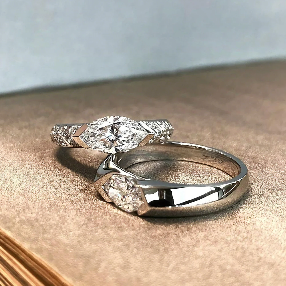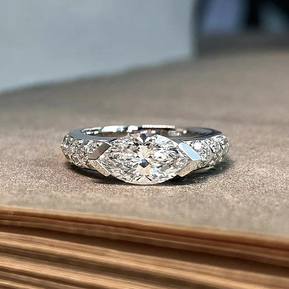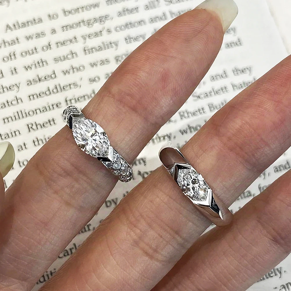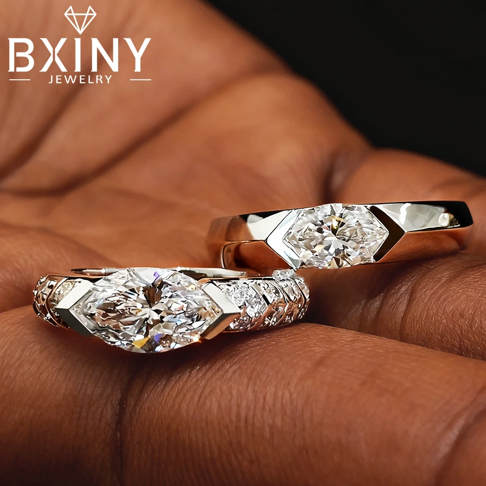 BXINY GRA Certified 1CT Marquise Cut Moissanite Ring S925 Silver for Women D Color Lab Diamond Engagement Band Gift Fine Jewelry