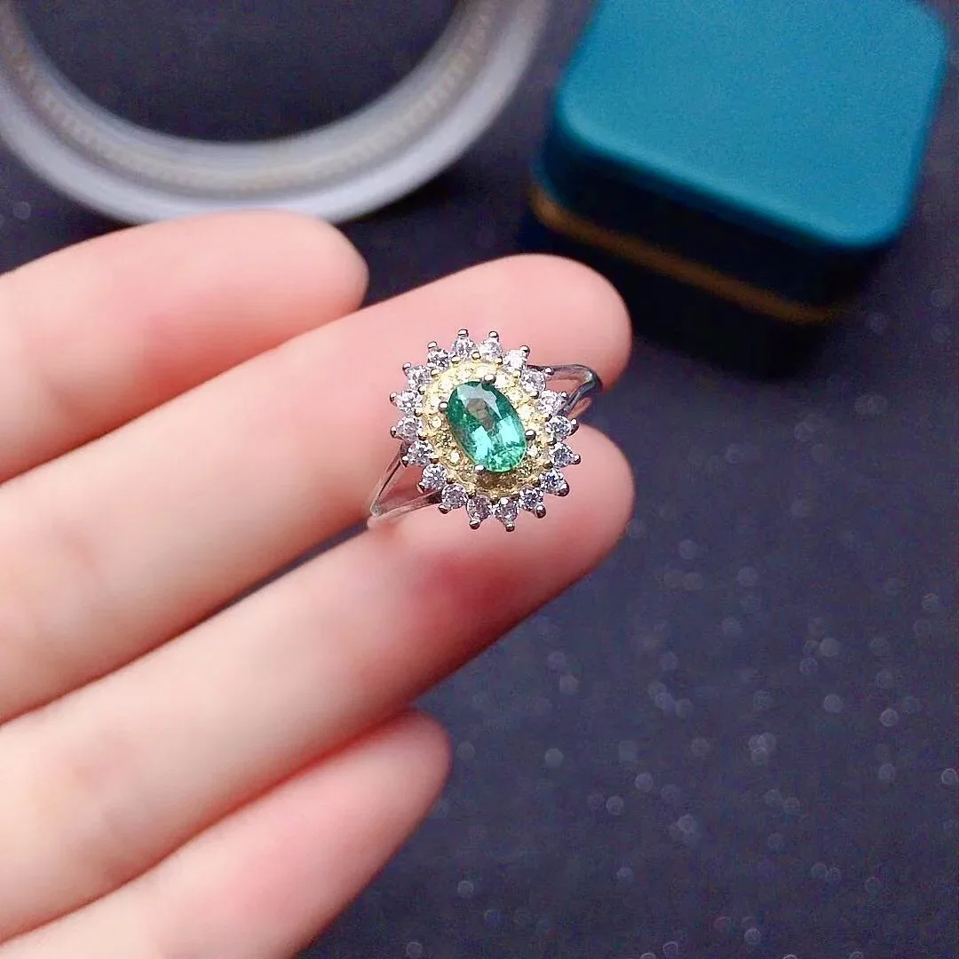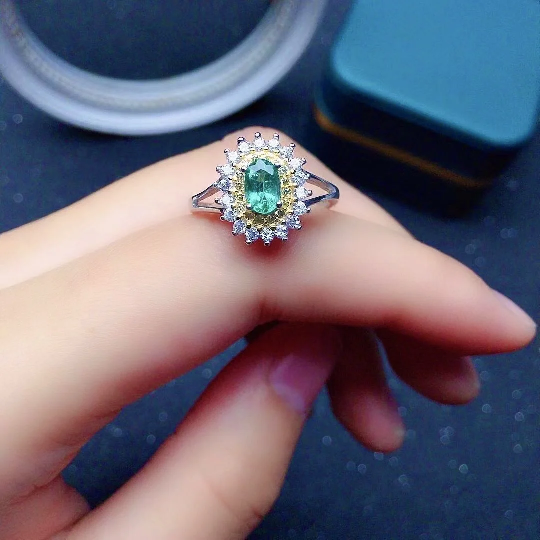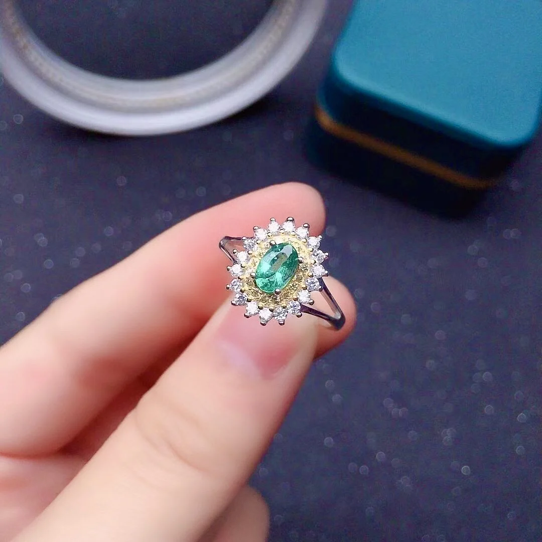 Classic 925 Silver Emerald Wedding Ring for Woman 0.4ct 4mm*6mm 100% Natural Emerald Ring Gift for Wife