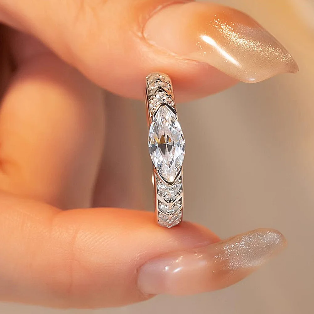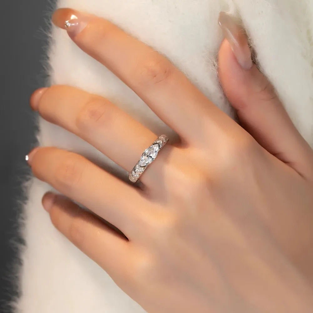 A 925 silver 2 carat marquise moissanite simple and casual high quality men’s and women’s wedding ring couple ring