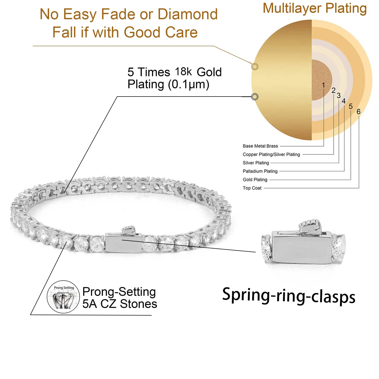Free Custom Name Laser Marking Cubic Zirconia Tennis Chain Iced Out Bracelet Plated Bling Custom Made Jewellery Drop Shipping