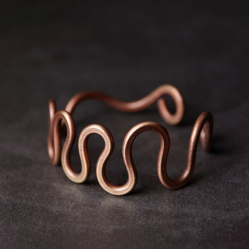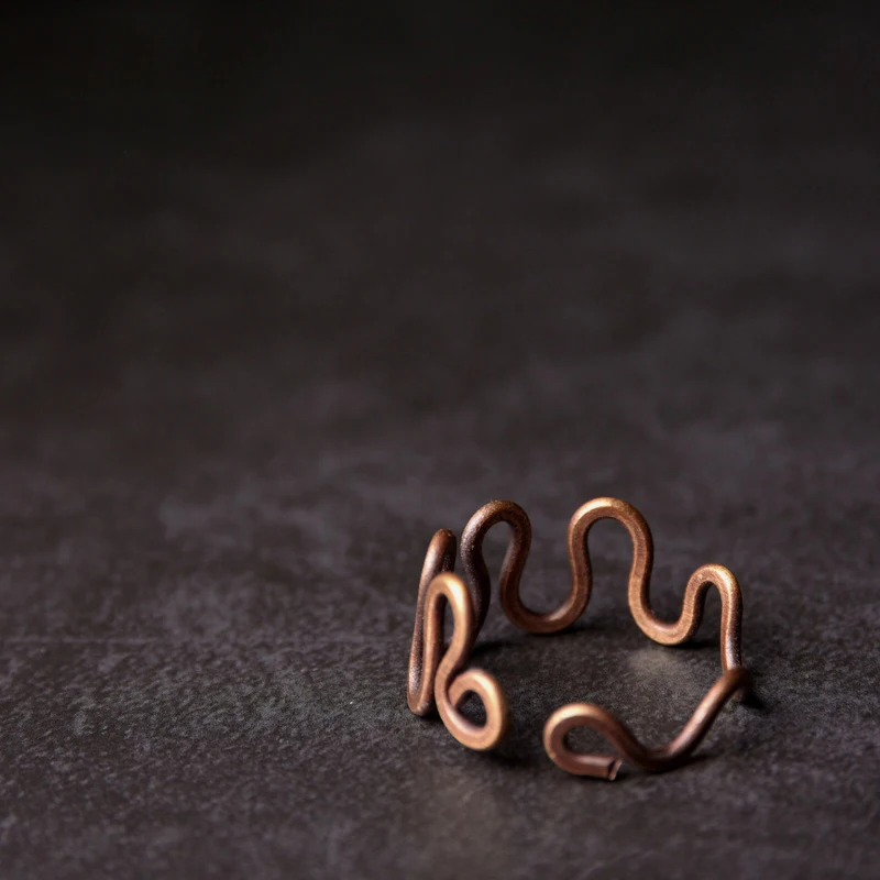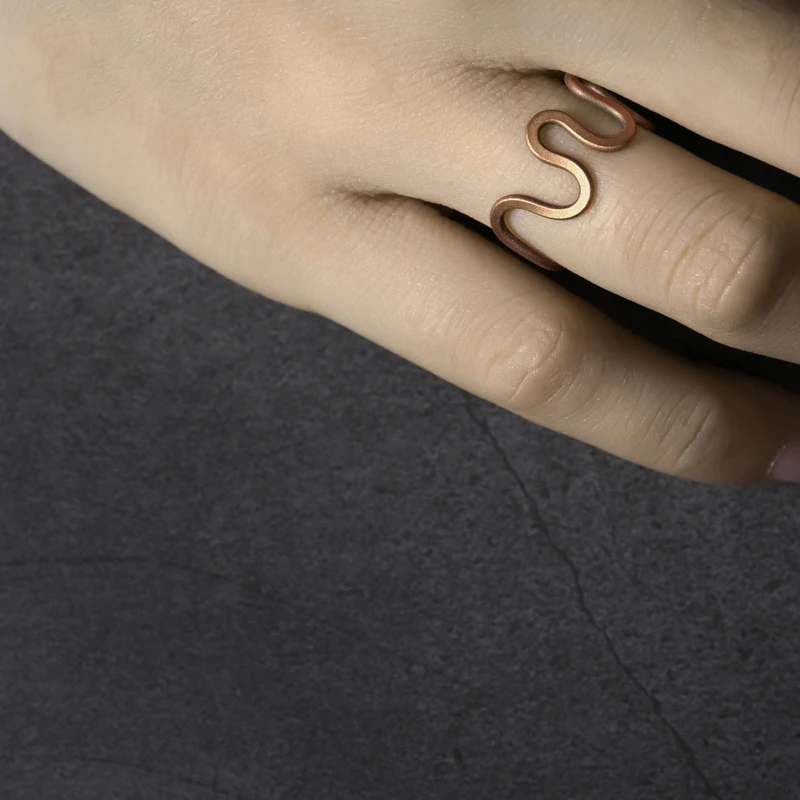 Handcrafted Curve Vintage Process Solid Copper Ring THE FREEDOM Size Adjustable Wave Retro Punk Unisex Street Male Female