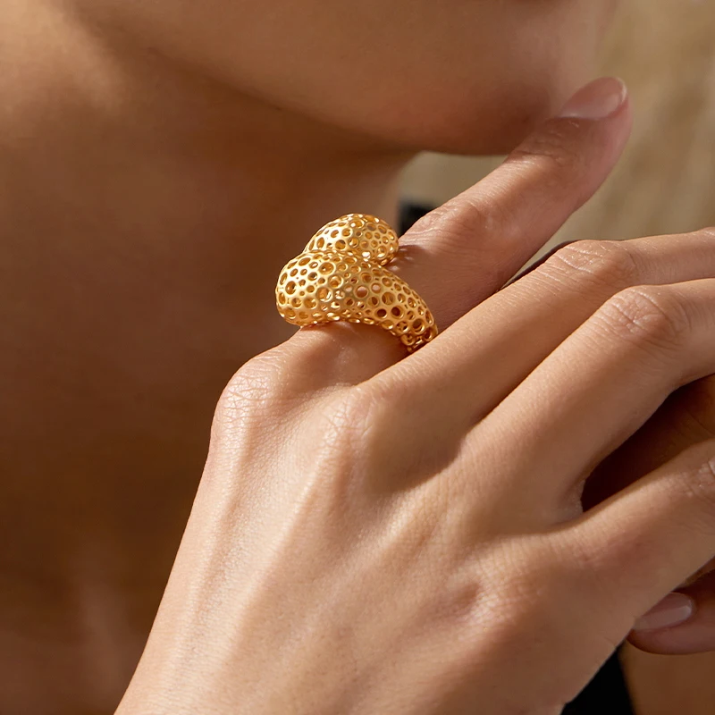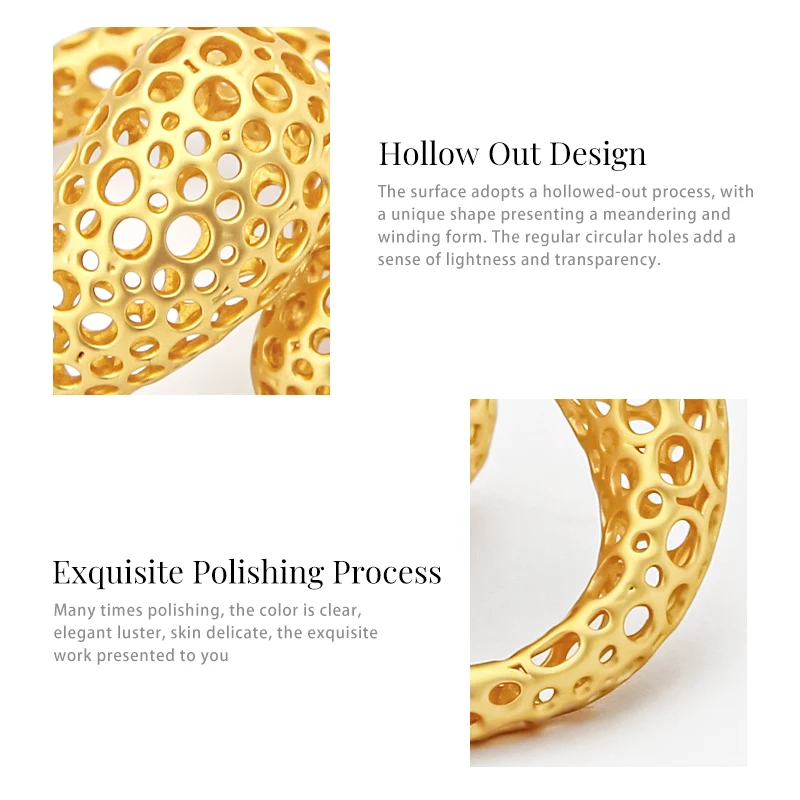 IVOG Arc Design Gold Color Ring For Women Hollow Out Fashion Jewelry Elegant Wedding Anniversary Official-Websit