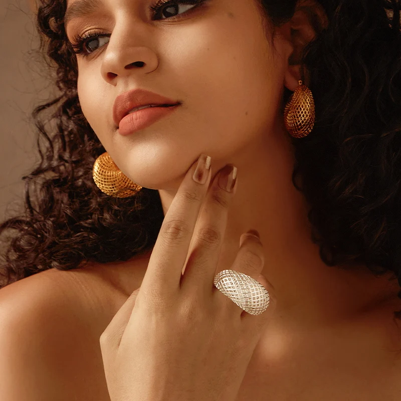 IVOG Hollow Out Big Nest Ring For Women 18k Gold Plated Brass Ring Contemporary Stylish Jewelry Gift Flagship Store