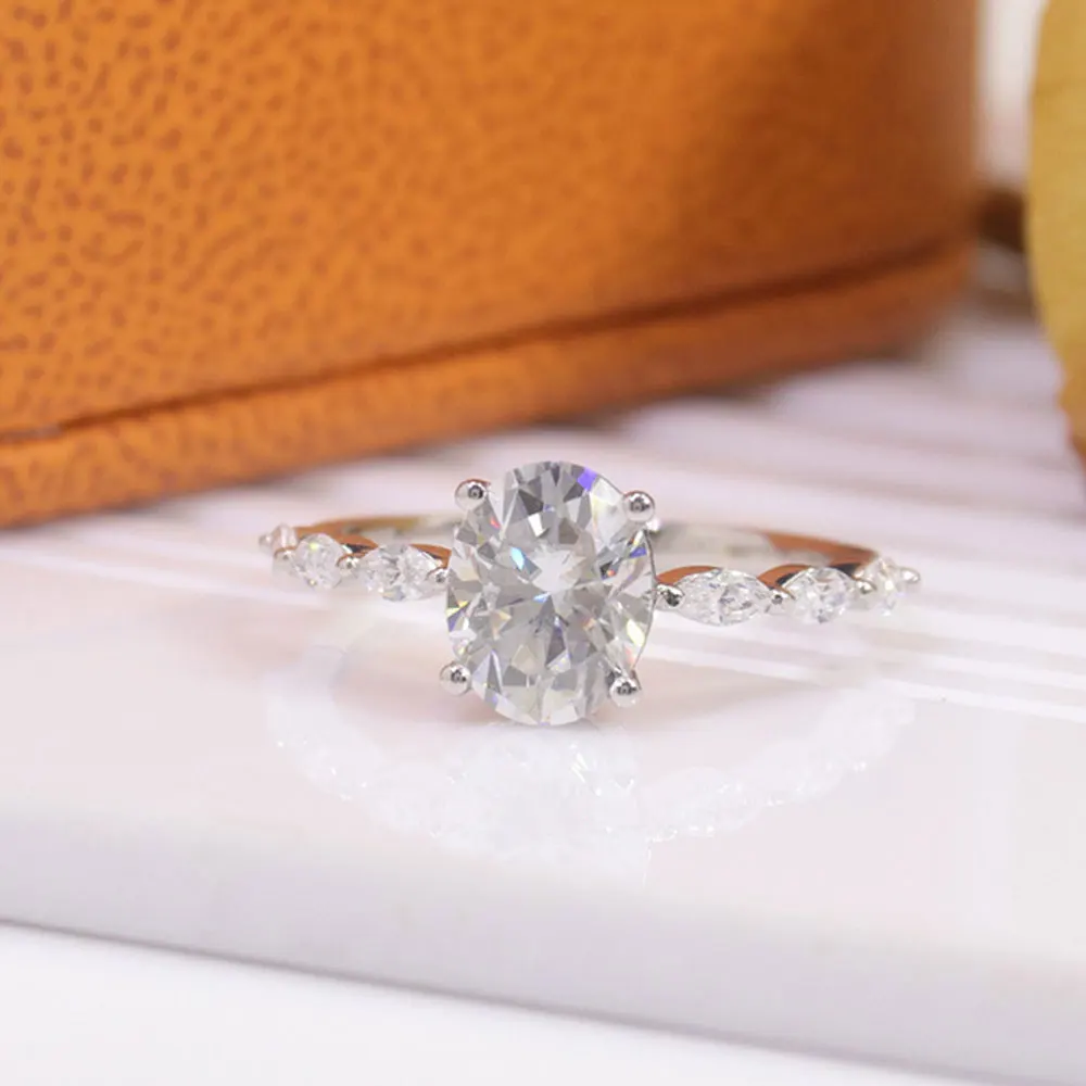KNOBSPIN 2ct Oval Cut Moissanite Engagement Rings for Women s925 Sterling Sliver Plated 18k White Gold Promise Ring for Her Gift