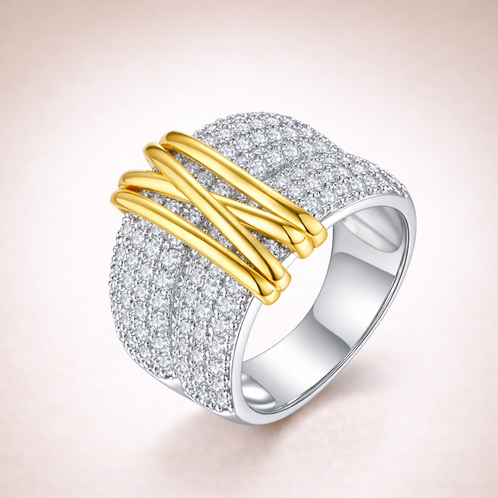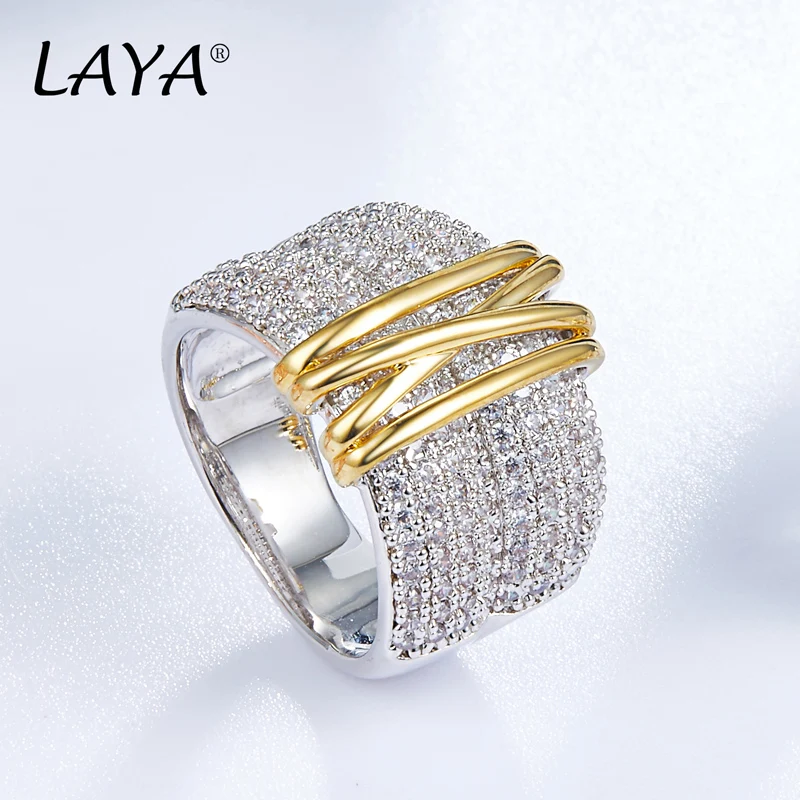 100% 925 Sterling Silver Fashion Retro Light Gold Multi-Line Shining Zircon Ring For Men Women Party Exquisite Fine Jewelry