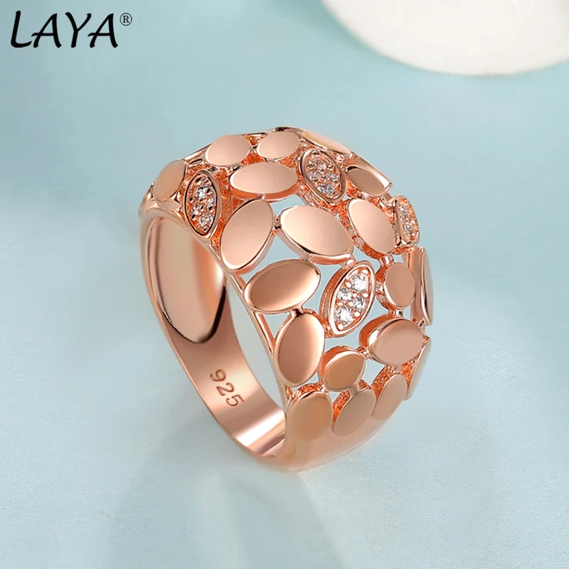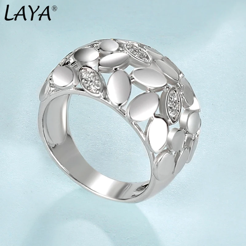 925 Sterling Silver Shining Zircon Leaf Share Wide Finger Ring For Women Wedding Original Luxury Fine Jewelry 2022 Trend