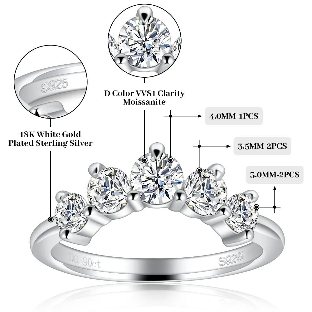 LinkerLove Half Eternity Moissanite Curved Wedding Band S925 Sterling Silver Crown Engagement Ring for Women Party Fine Jewelry