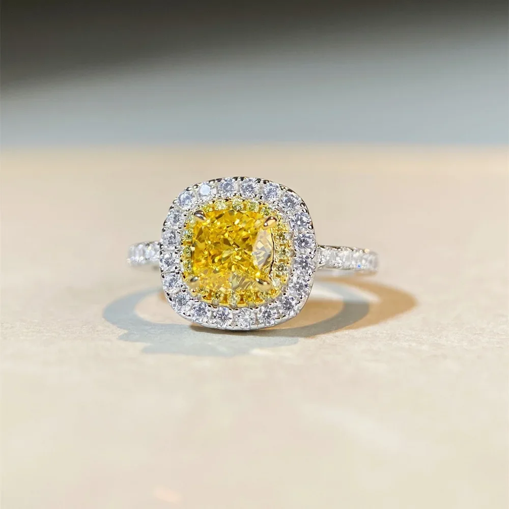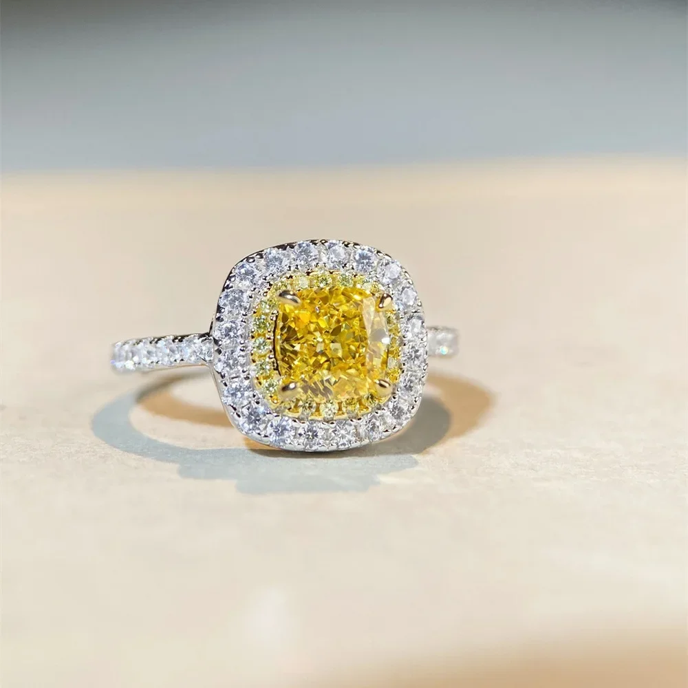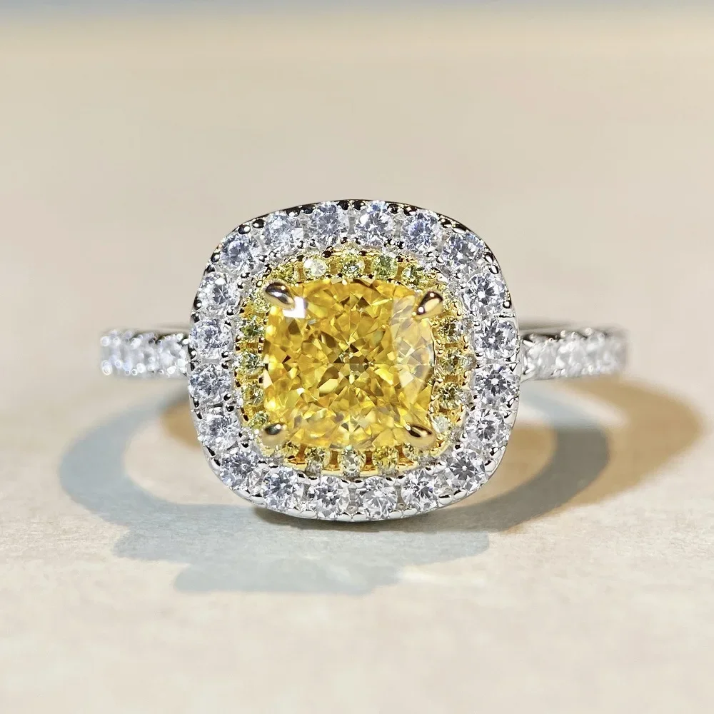 Luxury 18K White Gold Solid Platinum PT950 Women’s Ring – Stunning Yellow & Reddish Luxury Diamonds