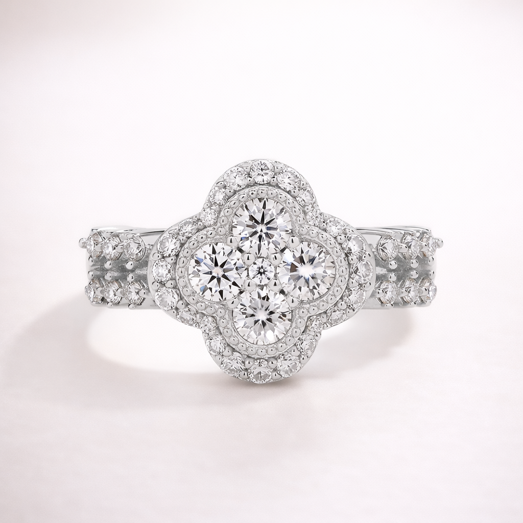 MINTYBOX Moissanite 18k White Gold Plated Diamond Ring For Women S925 Sterling Silver Engagement Wedding Fine Jewelry Four-Leaf