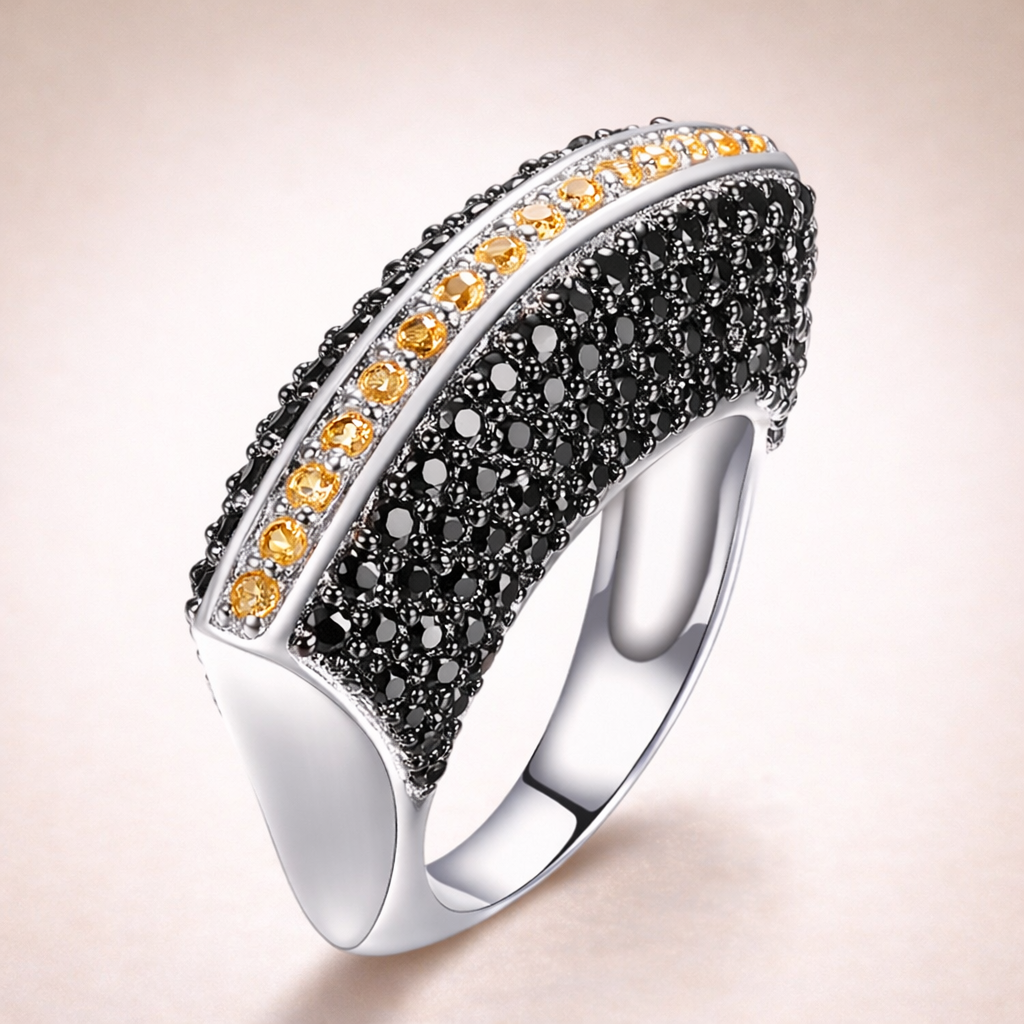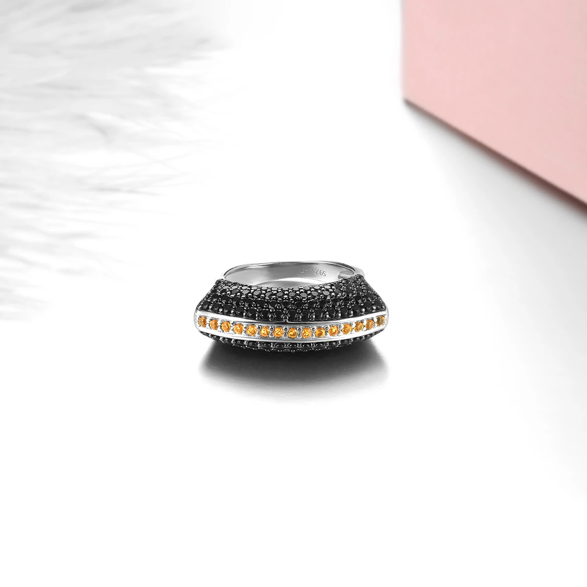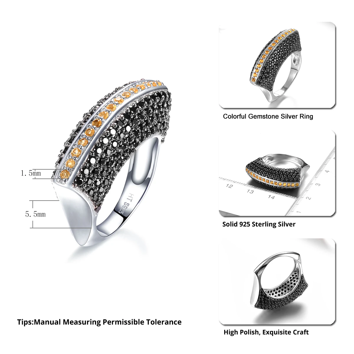 Natural Gemstone Citrine Black Spinel 925 Sterling Silver Unique Special Rings Wedding Rings Unisex Style Women’s Personal Ring
