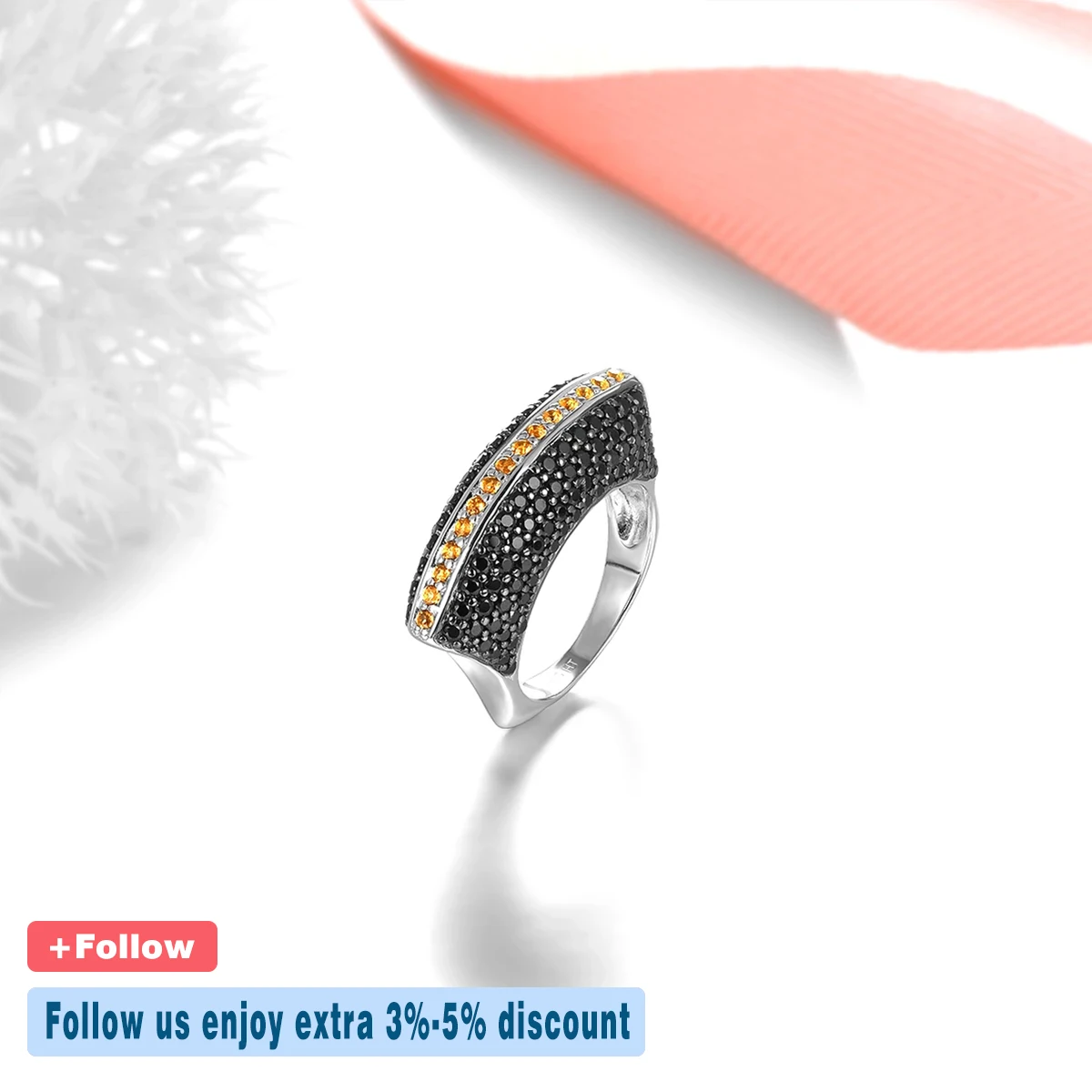 Natural Gemstone Citrine Black Spinel 925 Sterling Silver Unique Special Rings Wedding Rings Unisex Style Women's Personal Ring