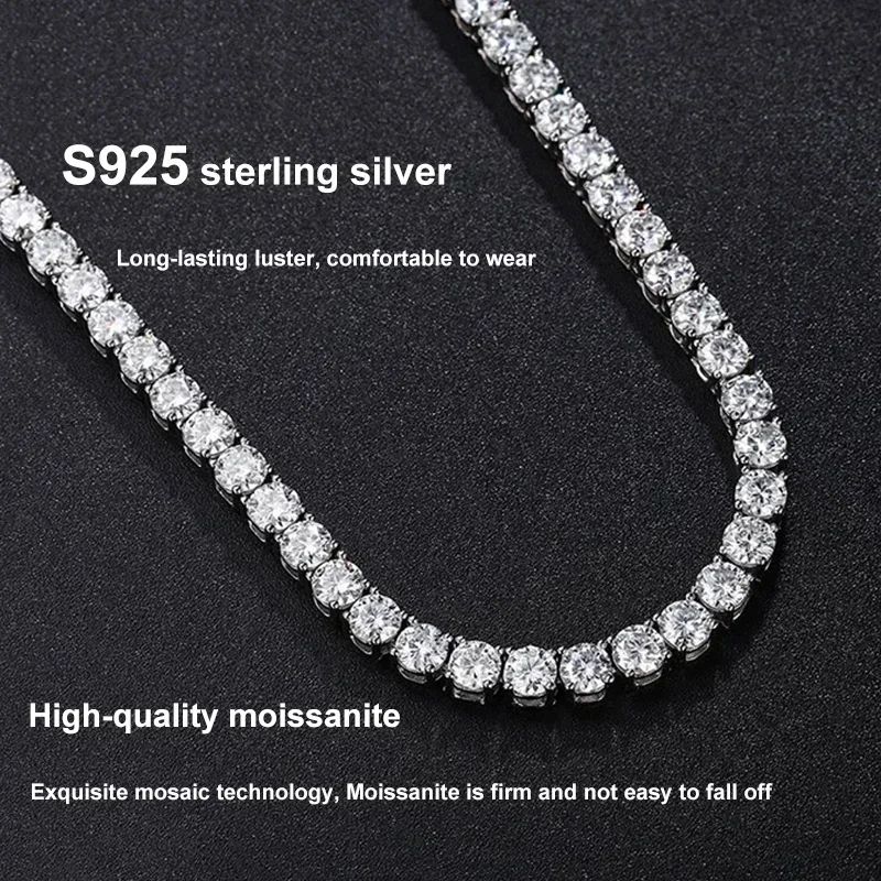 NeeTim 925 Sterling Silver Real Moissanite Tennis Necklace Bracelet for Women Men Lab Diamonds Neck Chains Necklaces