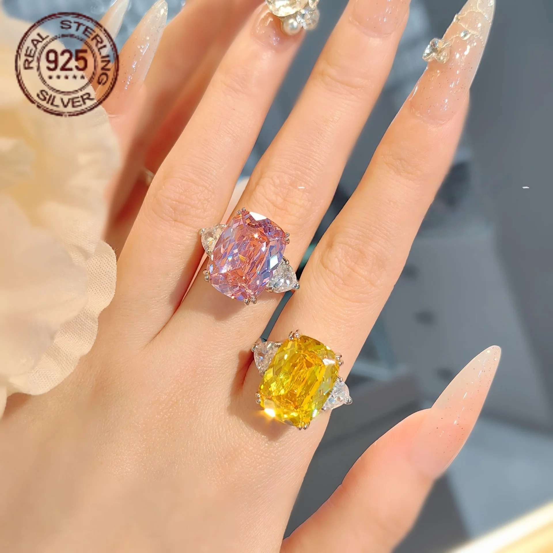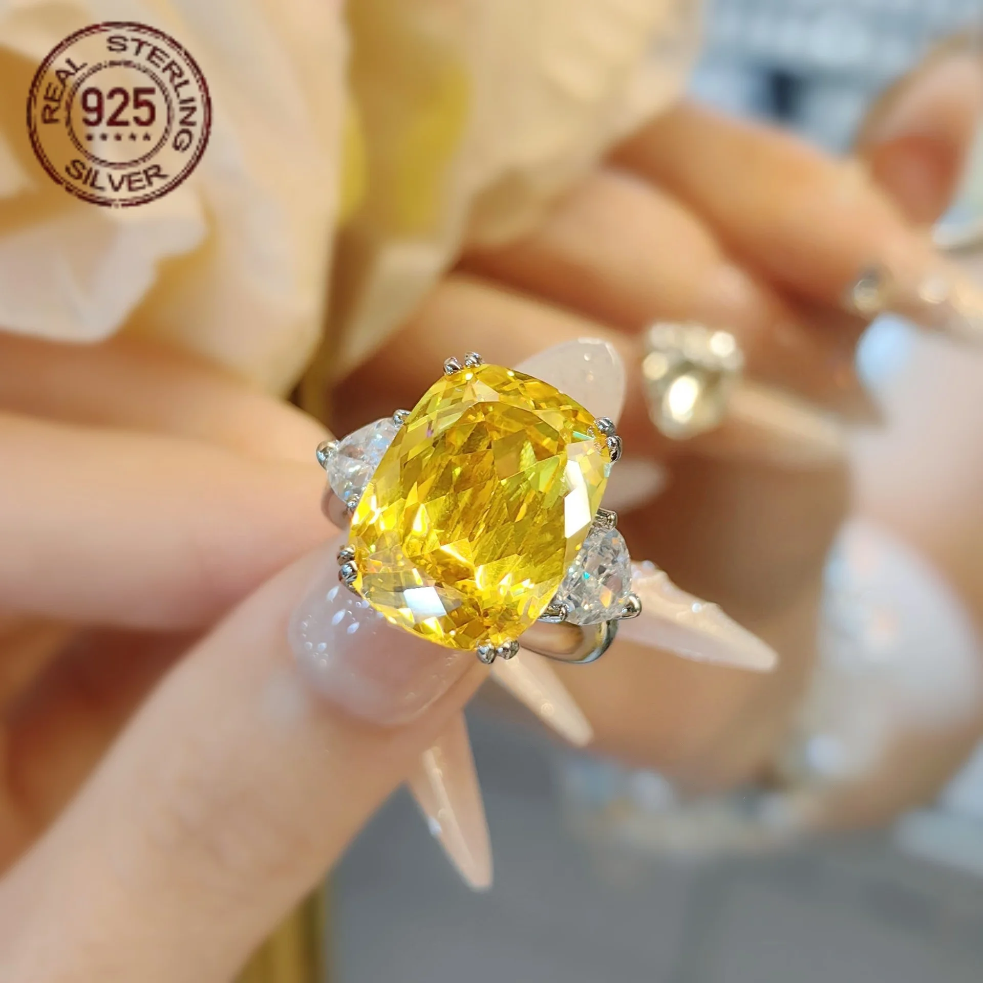 New Rectangle Radiant Cut Yellow Citrine Topaz Gems Fashion Women 925 Sterling Silver Ring Exquisite Wedding Band Fine Jewelry