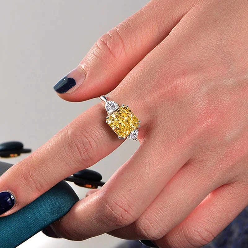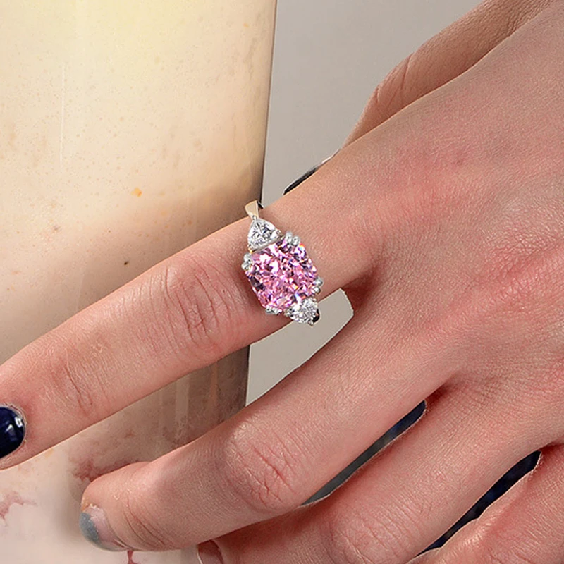 Name:OEVAS 100% 925 Sterling Silver Sparkling 10*10mm Square Pink White Yellow High Carbon Diamond Wedding Rings Women Fine Jewelry
