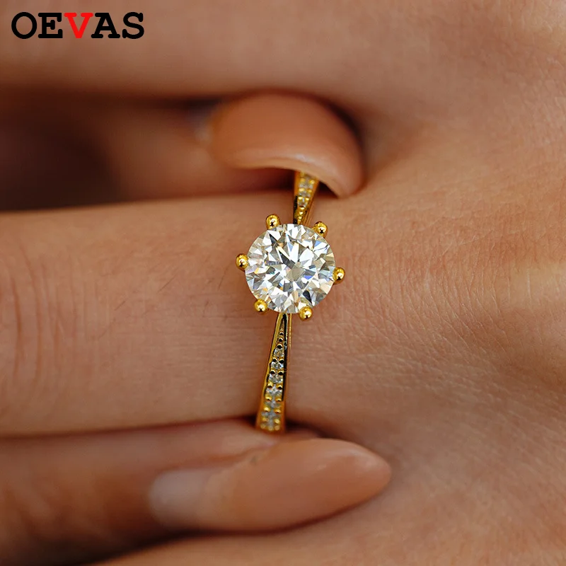 OEVAS 1ct 2ct Round Moissanite Rings 100% S925 Sterling Silver for Women Wedding Party Elegant Fine Jewelry