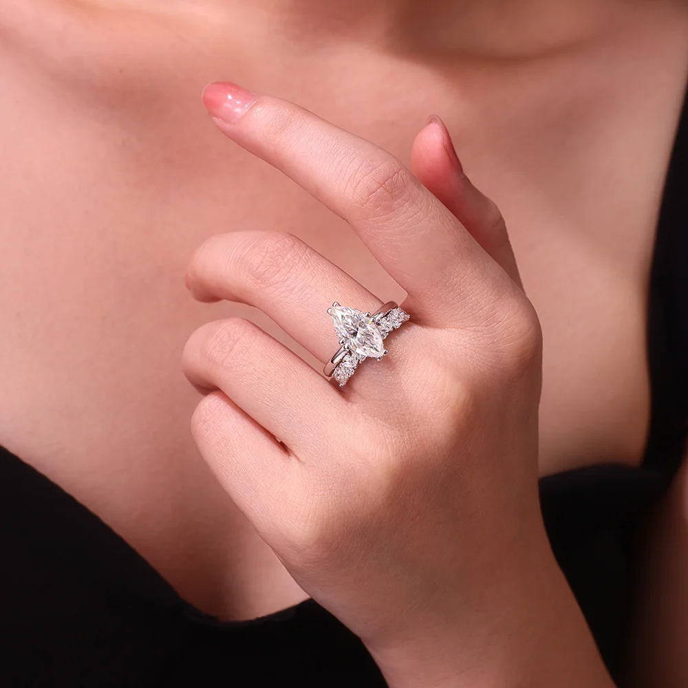 Be the first to review “OEVAS 7x14mm Marquise Cut Full Moissanite Ring Set for Women S925 Silver Lab Diamond Wedding Band Fine Jewelry”