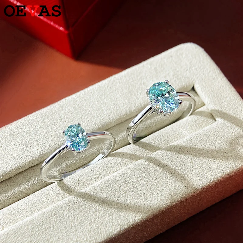 OEVAS Real 1CT / 2 Carat Oval Aquamarine Moissanite Ring For Women Rhodium Plated 925 Sterling Silver Diamond Fine Jewelry