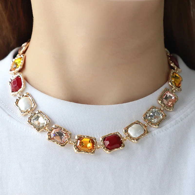 Original Design Alloy Glass Color Diamond Necklace Women’s Fashion Temperament Items