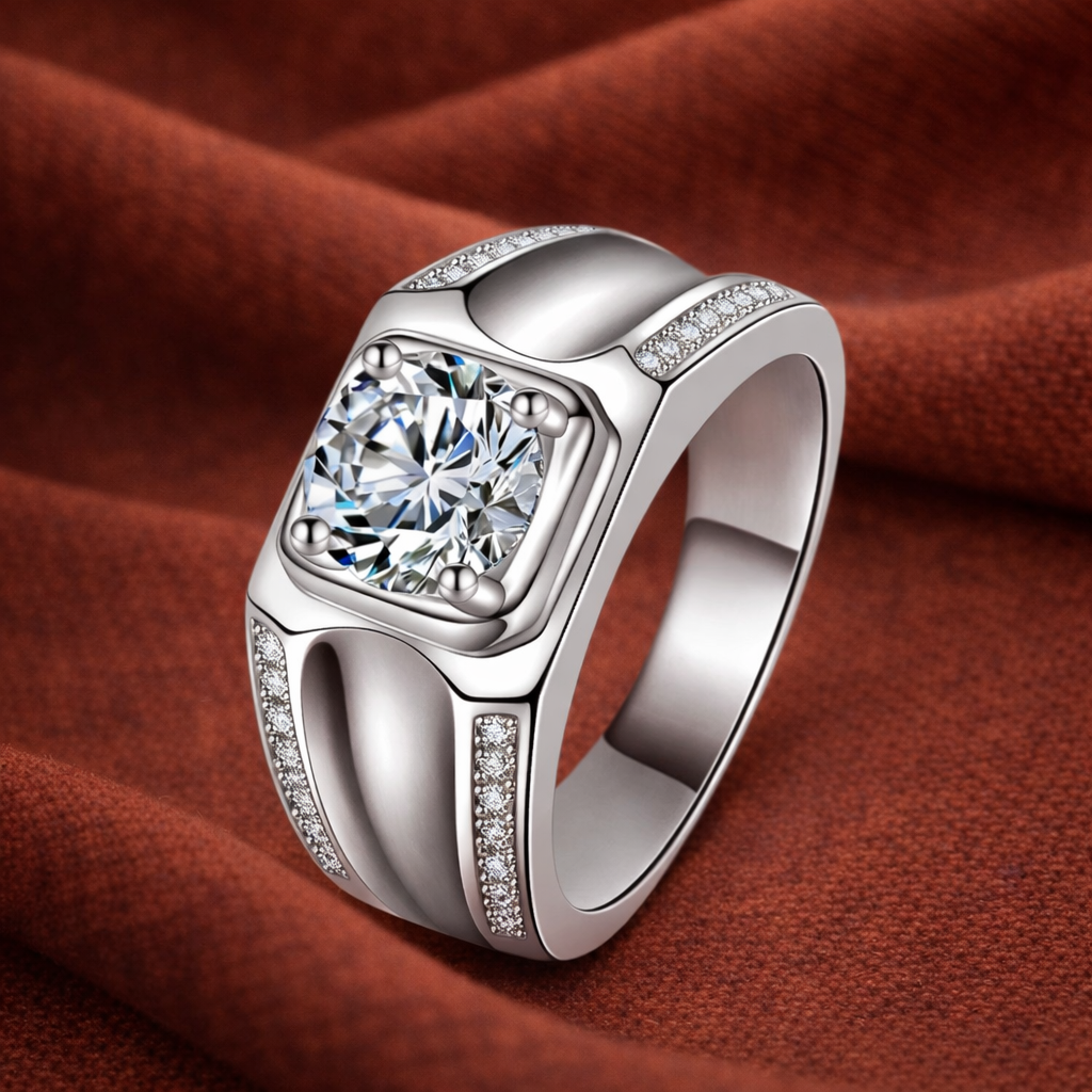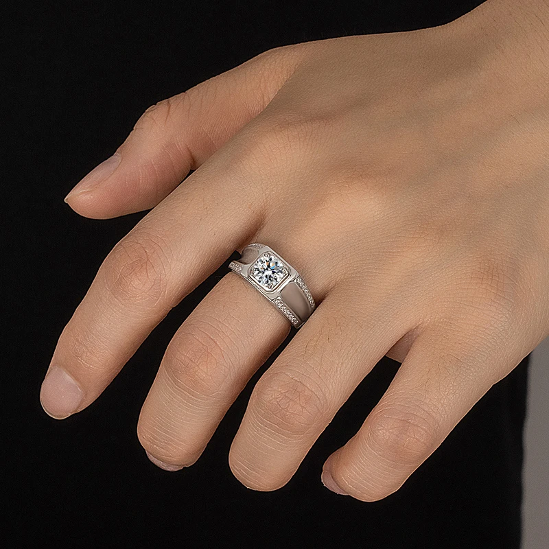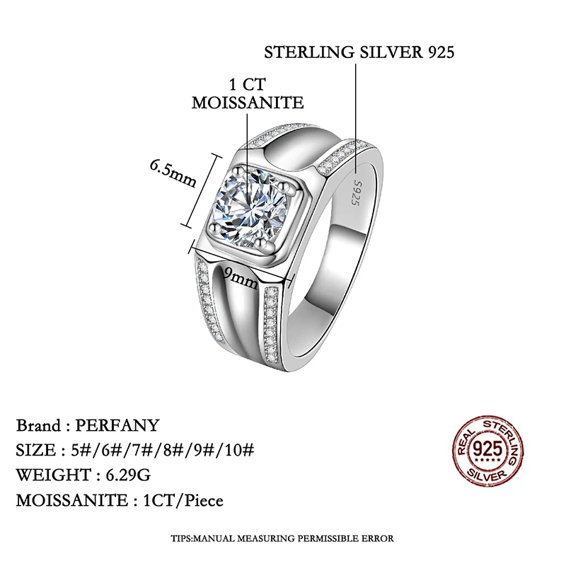 PERFANY 1CT Moissanite Ring for Men S925 Pure Silver Inlaid Laboratory Diamond Engagement Ring Wedding Luxury Jewelry
