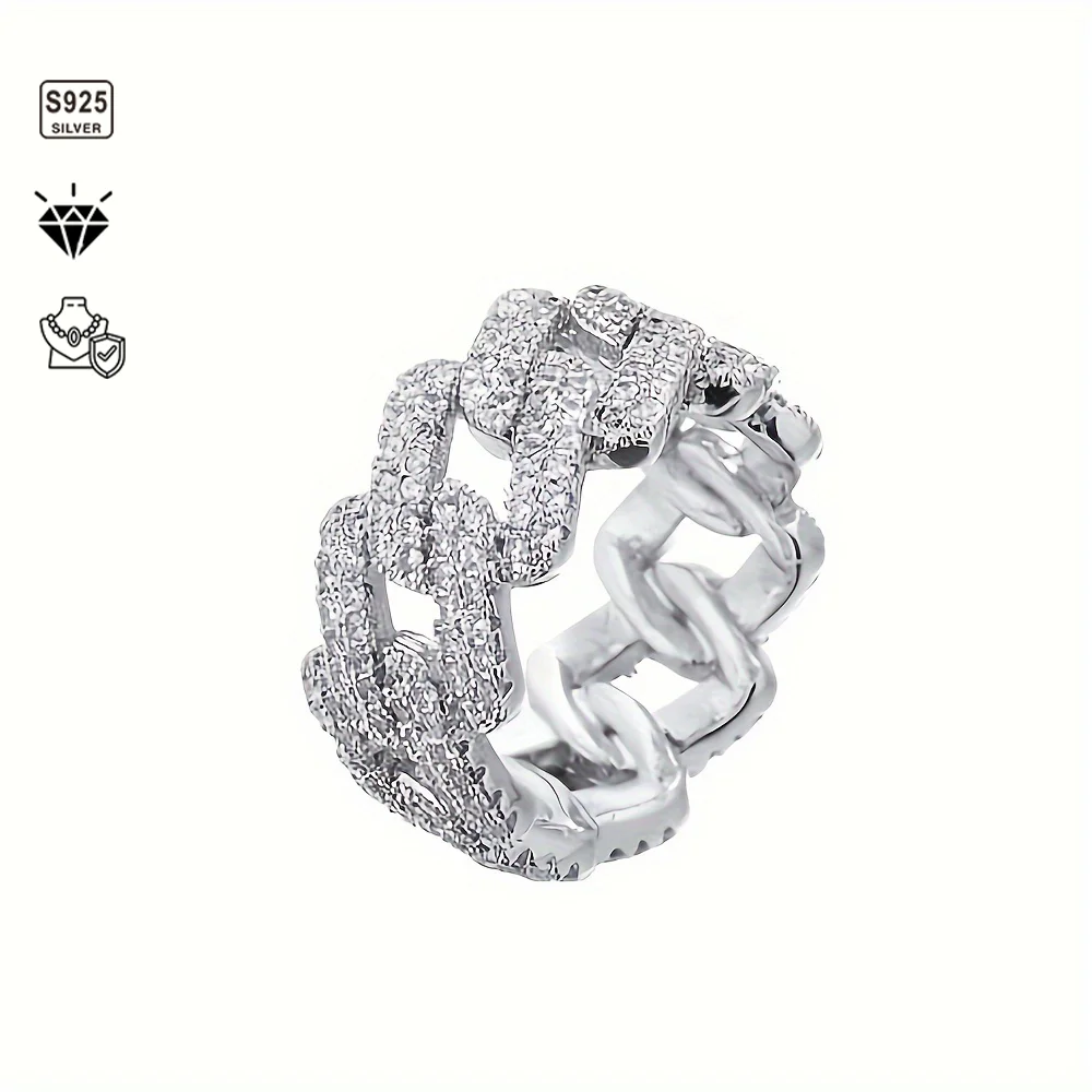 1pc S925 Sterling Silver with 5.4CT Moissanite American Street Hip Hop Cuban Ring, Unisex, Gemstone Jewelry | Gifts for Mother |