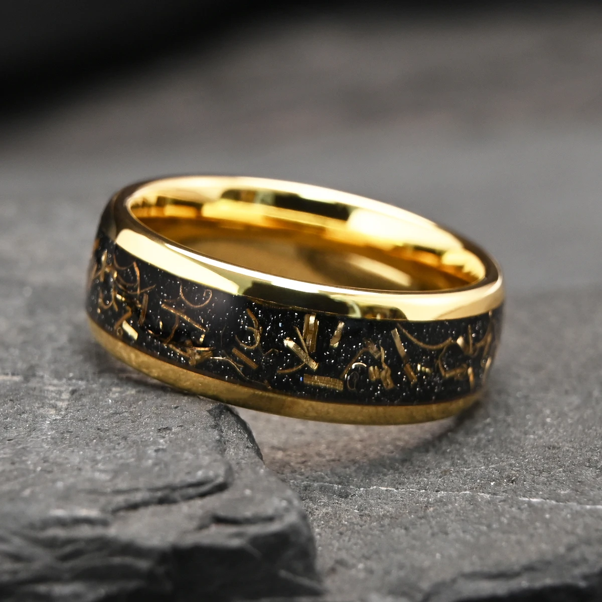 Upgrade your jewelry collection with this 8mm gold color tungsten carbide ring, designed for those who appreciate both fashion and durability. Crafted from high-quality tungsten steel, this ring features a refined gold wire inlay and a luxurious 18K gold plated finish that is non-fading and colorfast, keeping its shine for years to come.