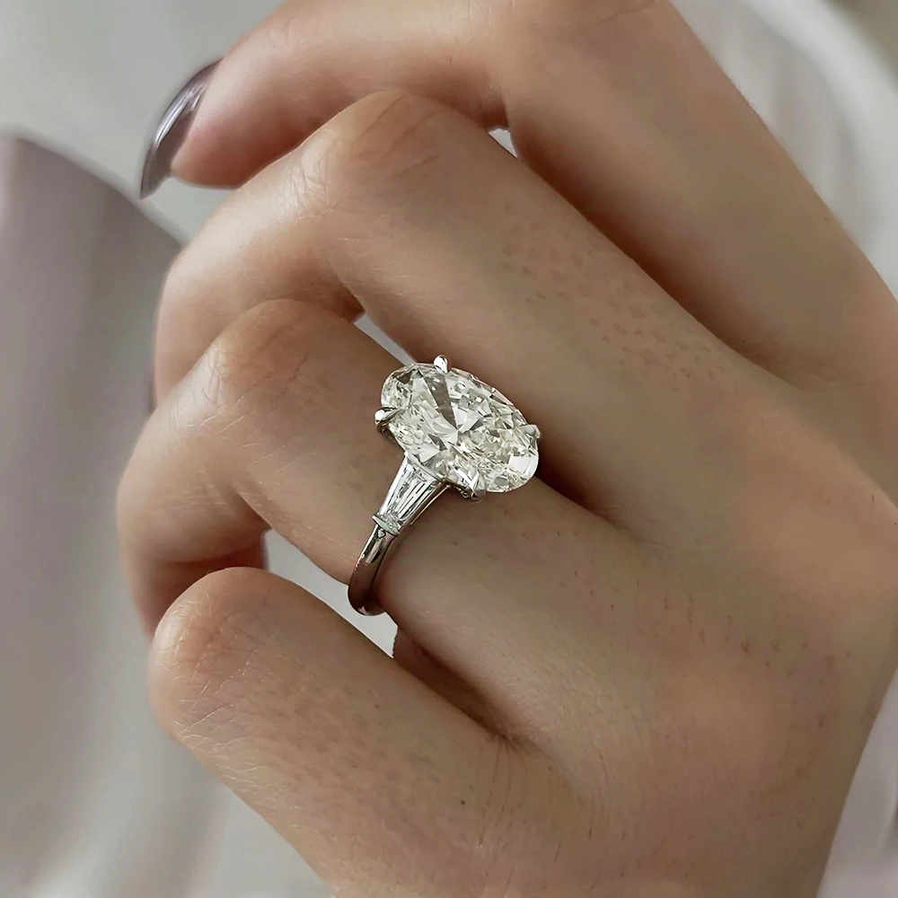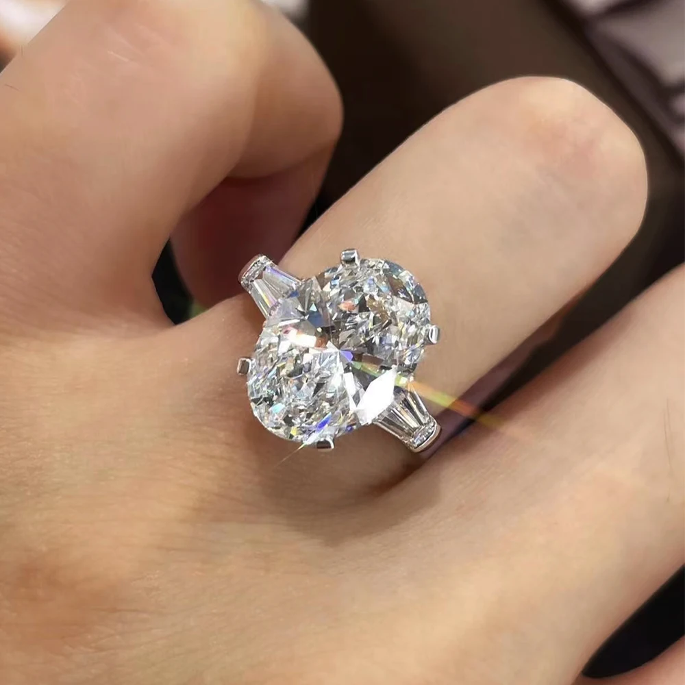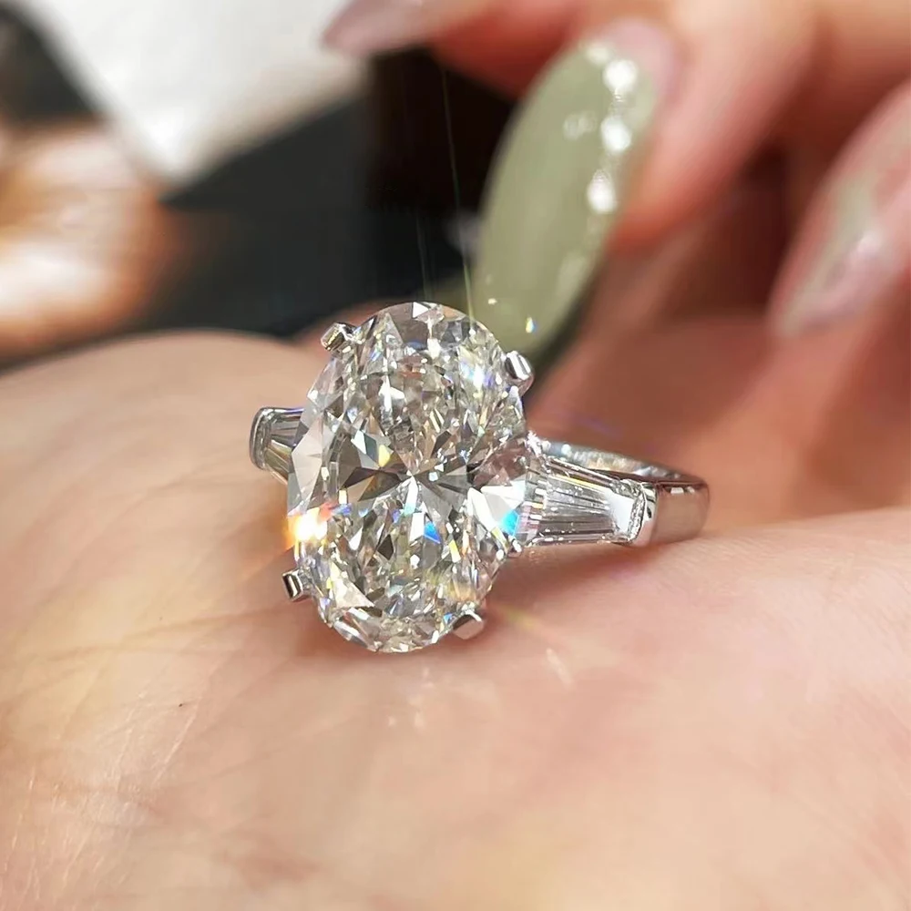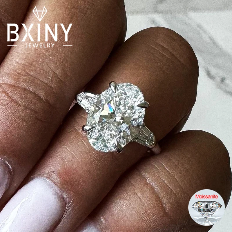 BXINY 4CT Oval Cut Moissanite Rings 925 Sterling Silver for Women GRA Certified Lab Diamond 3-Stone Promise Wedding Band Jewelry