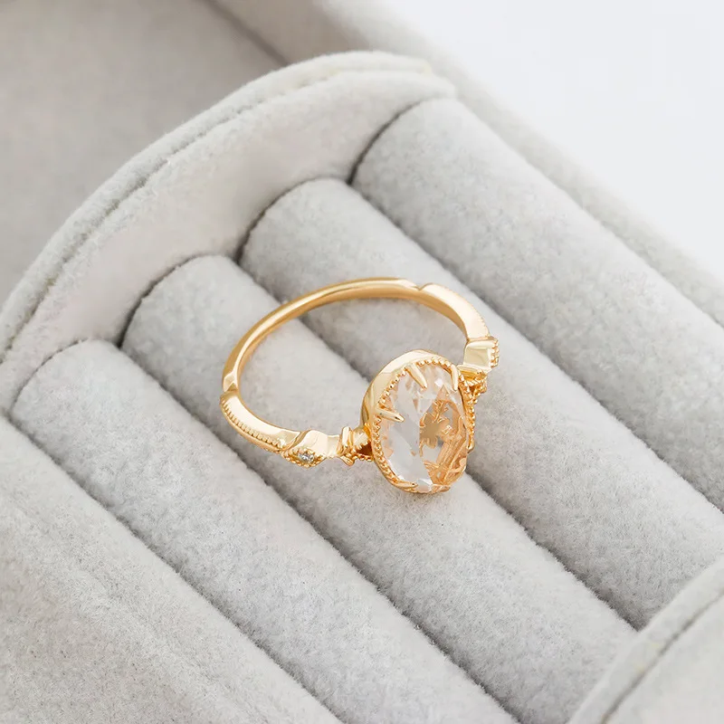 【Item Type】: Vitage Luxury Palace style Natrual White Crystal Ring