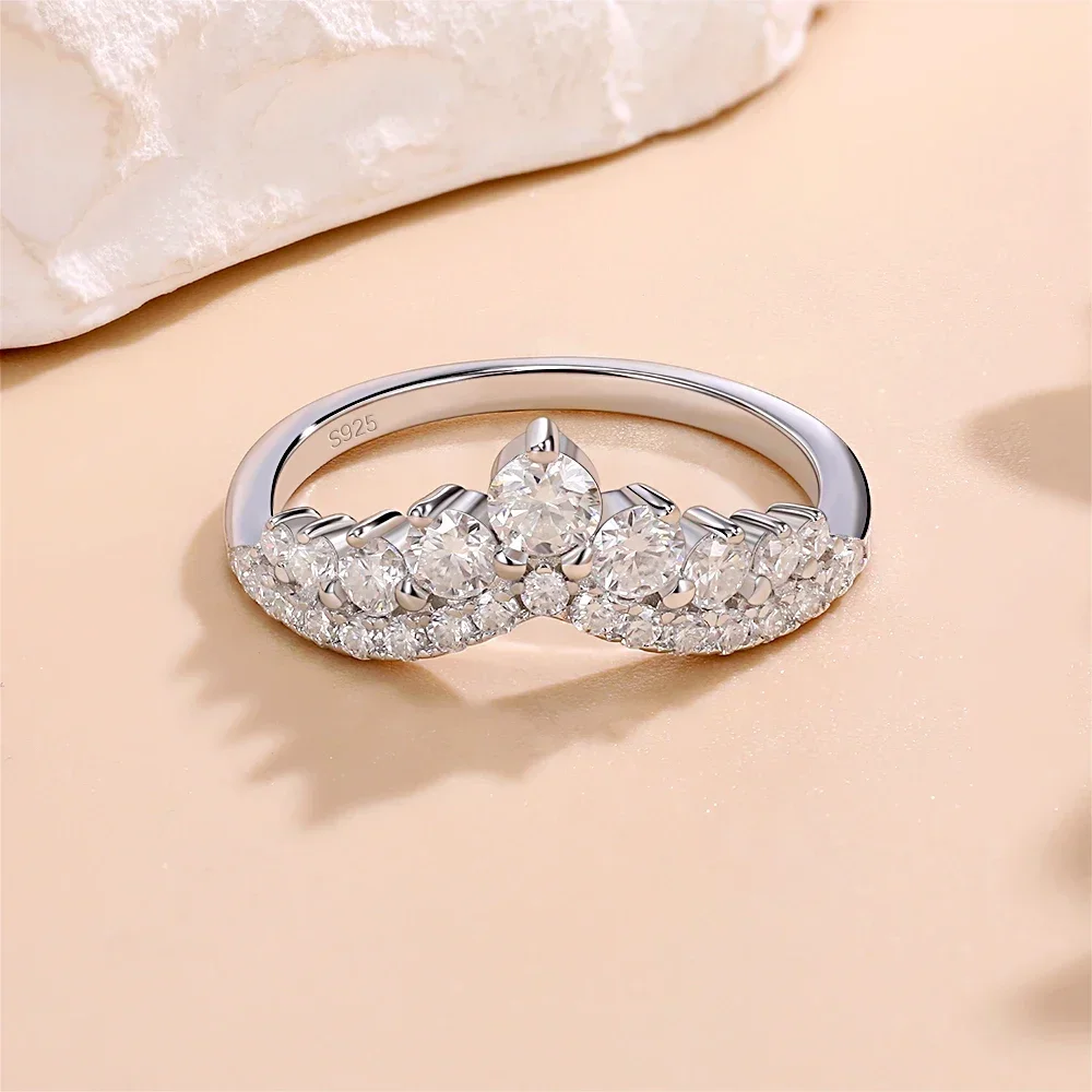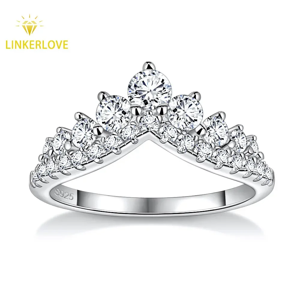 LinkerLove S925 Sterling Silver Rings D Color Moissanite Crown Wedding Bands Anniversary Gift Classic Trendy Engagement Jewelry
