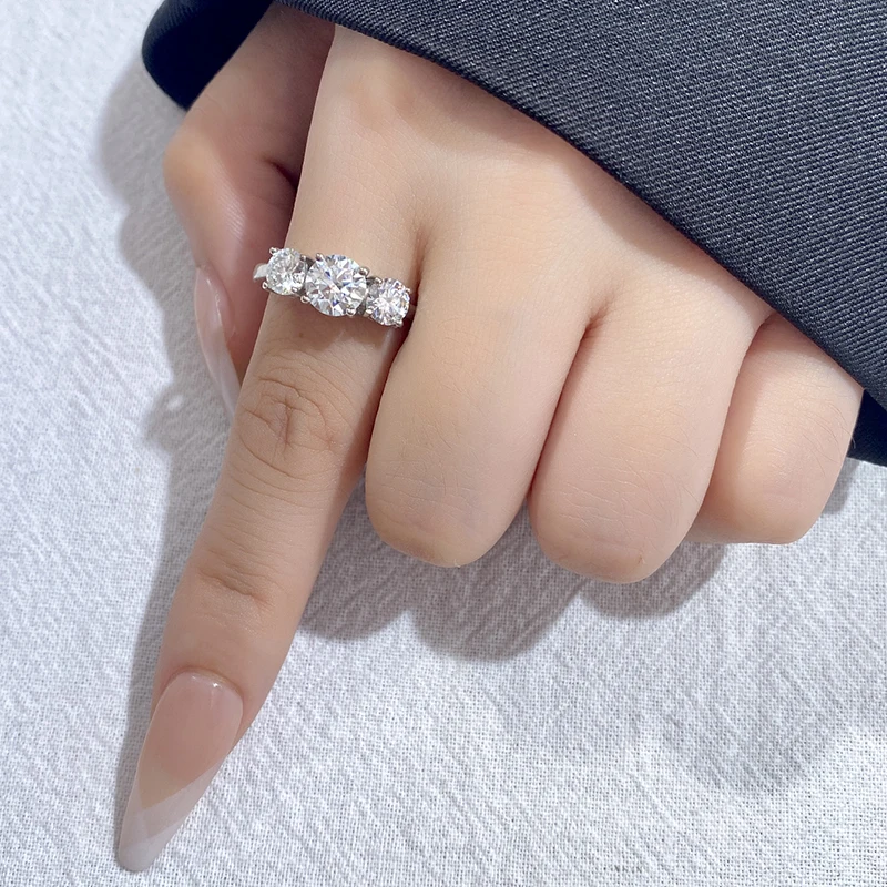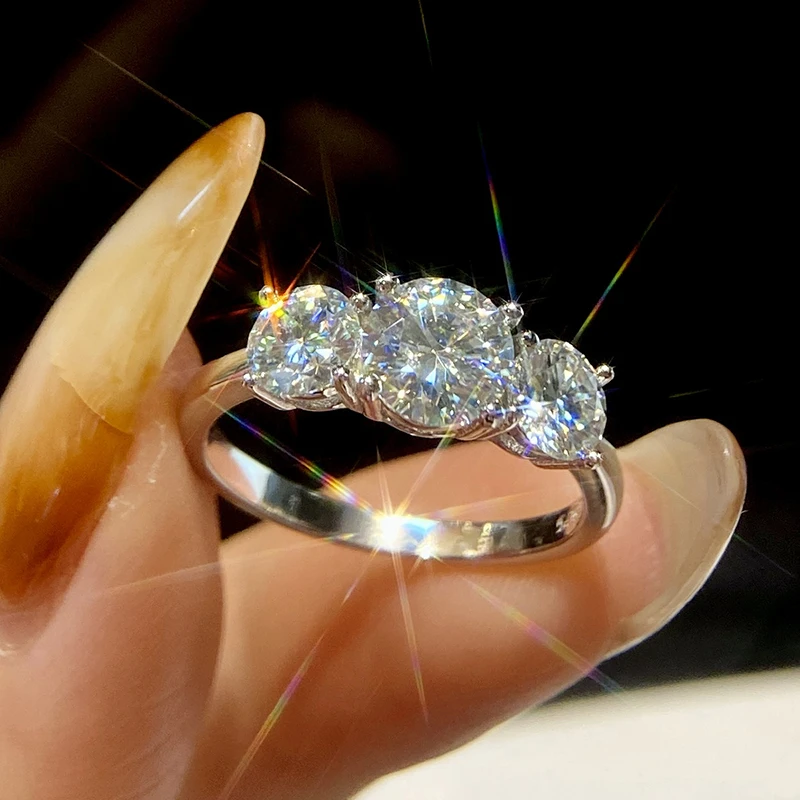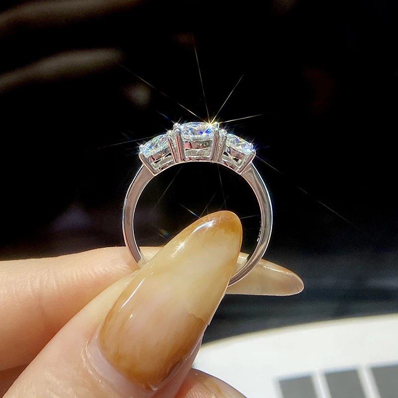 S925 Sterling Silver Brilliant 1CT Moissanite Three Diamonds Rings for Women Engagement Wedding Classic High Quality Jewelry