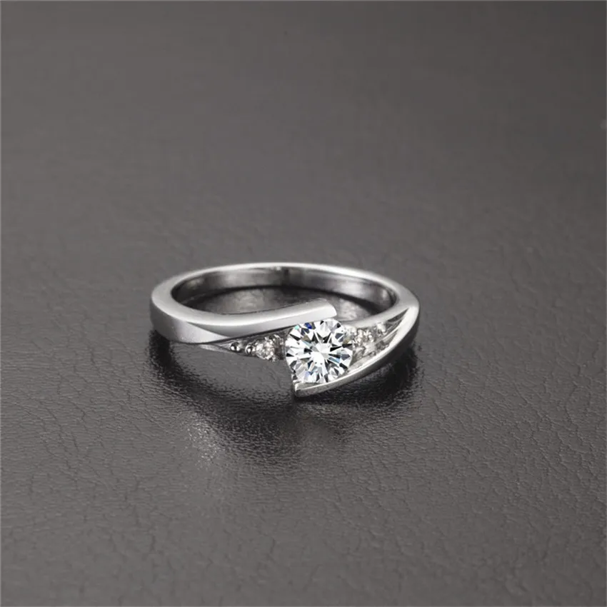 Solid 18K White Gold Round 0.5CT Moissanite Diamond Women Engagement Ring Gorgeous Birthday Gift For Lady Promise Love Jewelry