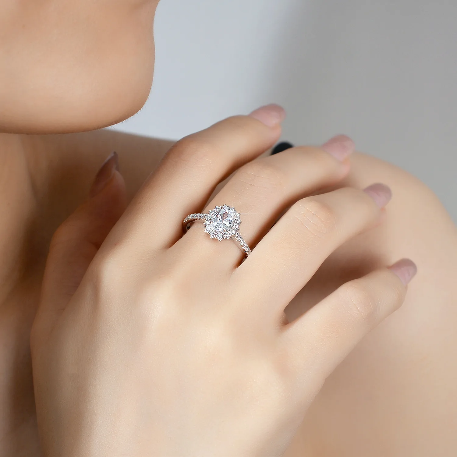 Unique Design Women’s PT950 Platinum Ring with 1.0 Carat Oval Moissanite, Stunning Beauty
