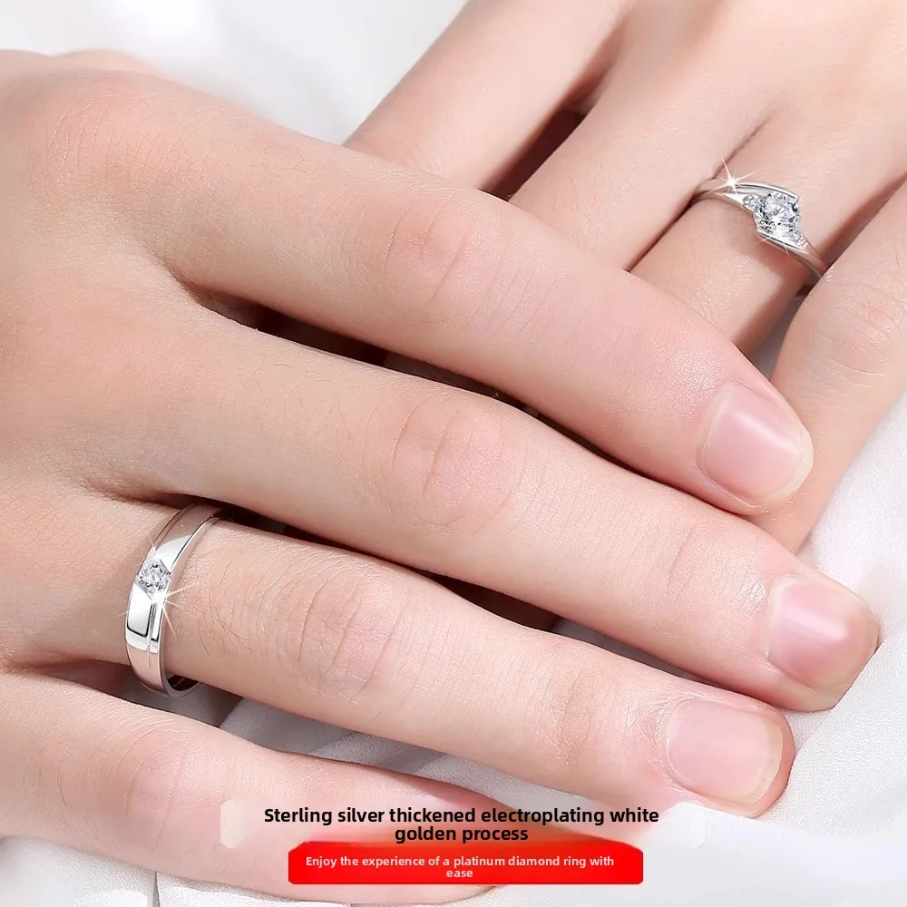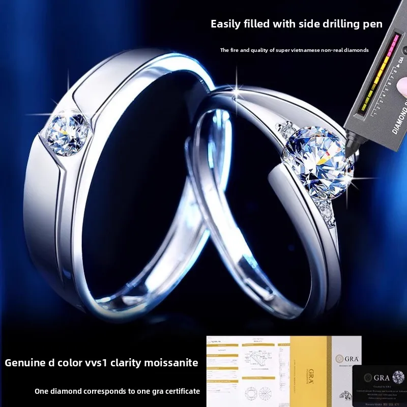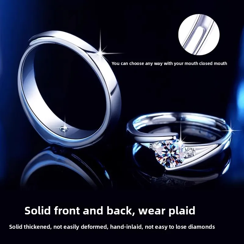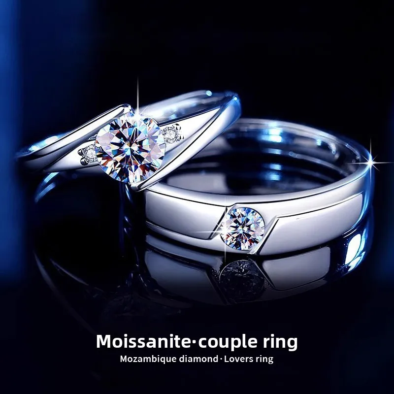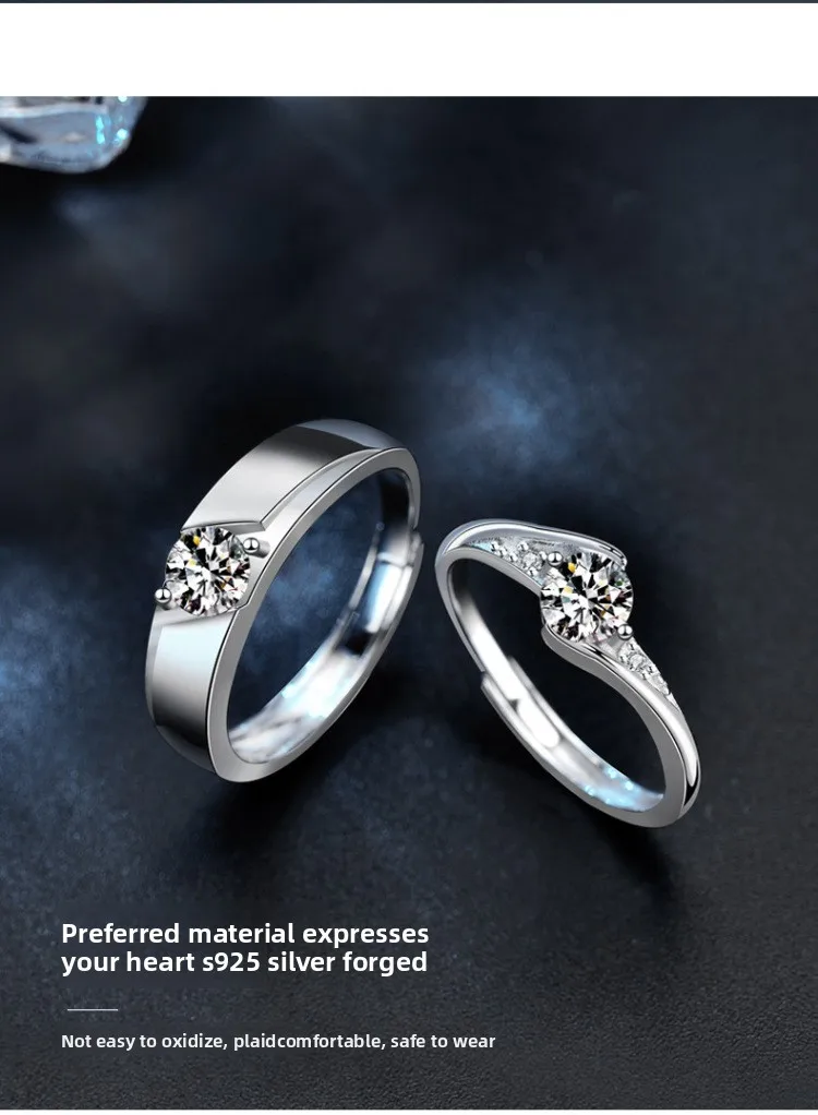S925 Rhodium-Plated 0.5ct Moissanite Couple Rings – Adjustable Exquisite Jewelry